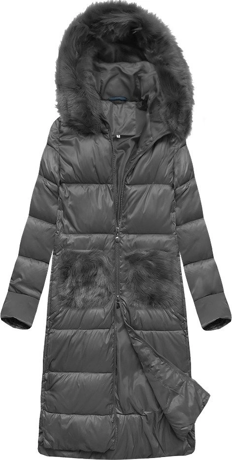 DŁUGA KURTKA Z KAPTUREM GRAFITOWA (PM7231)