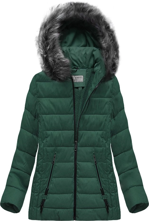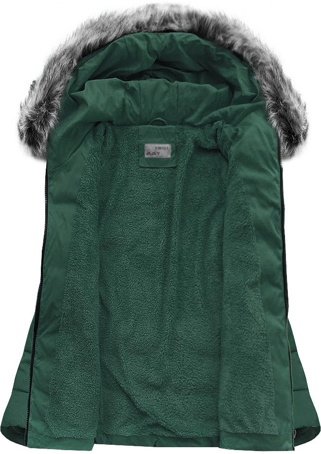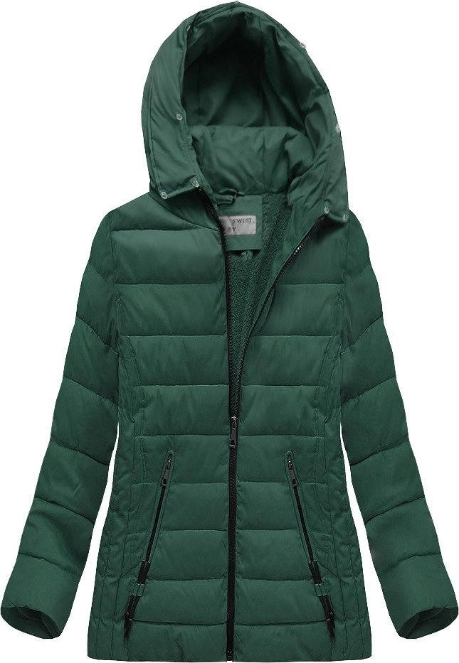 PIKOWANA KURTKA Z KAPTUREM BUTELKOWA ZIELEŃ (R9505)