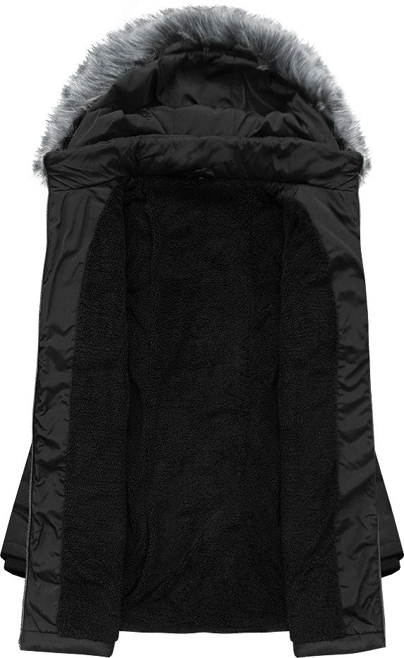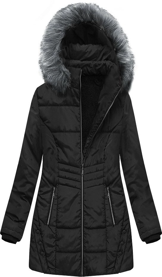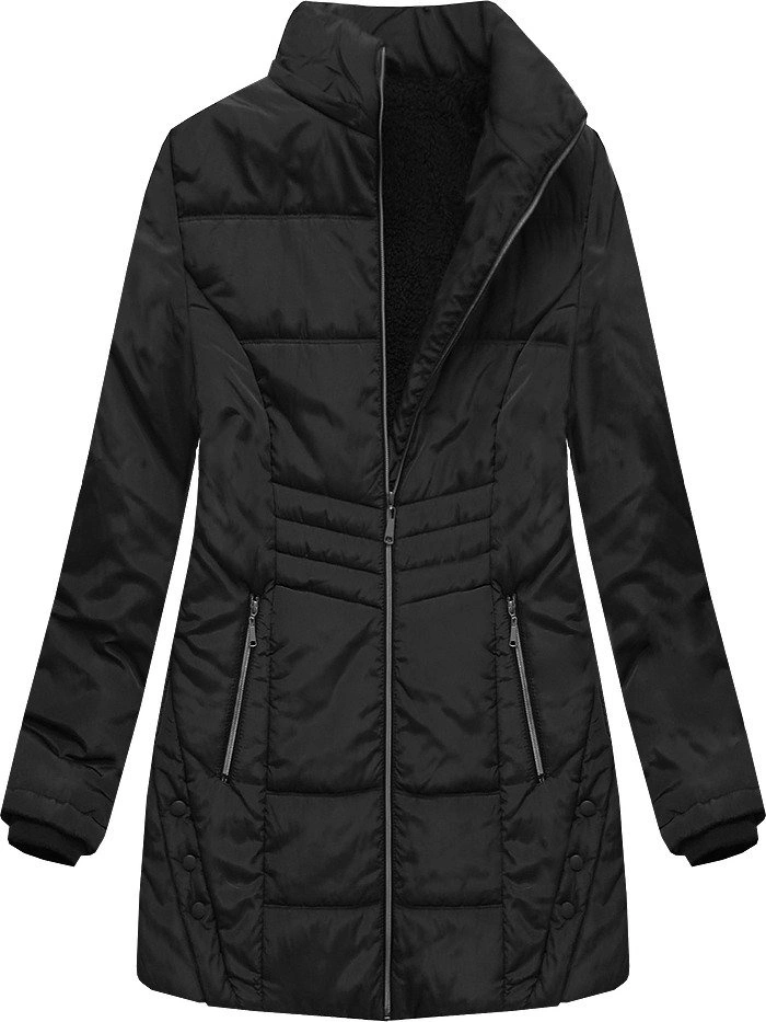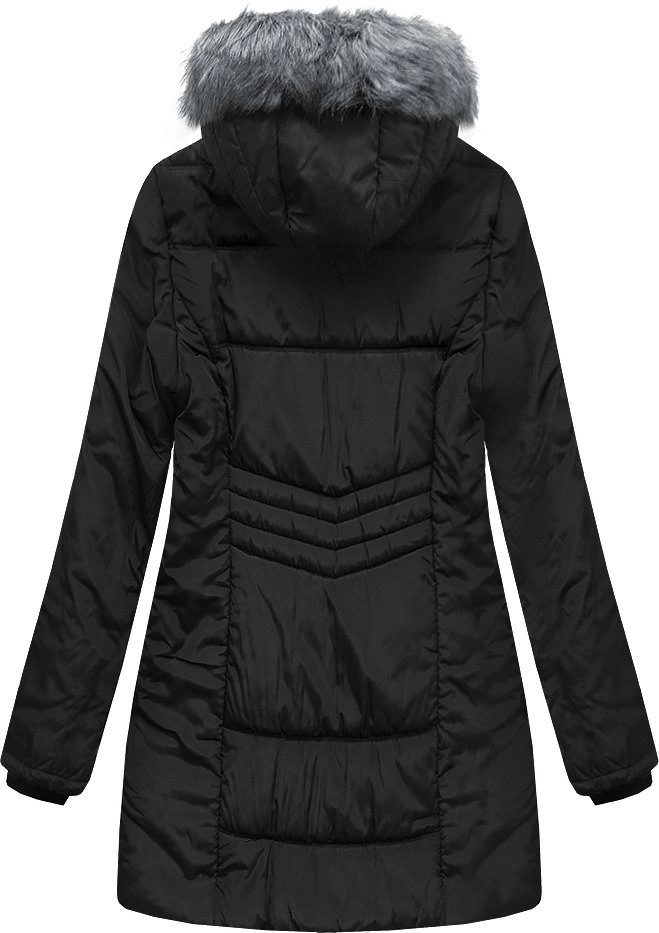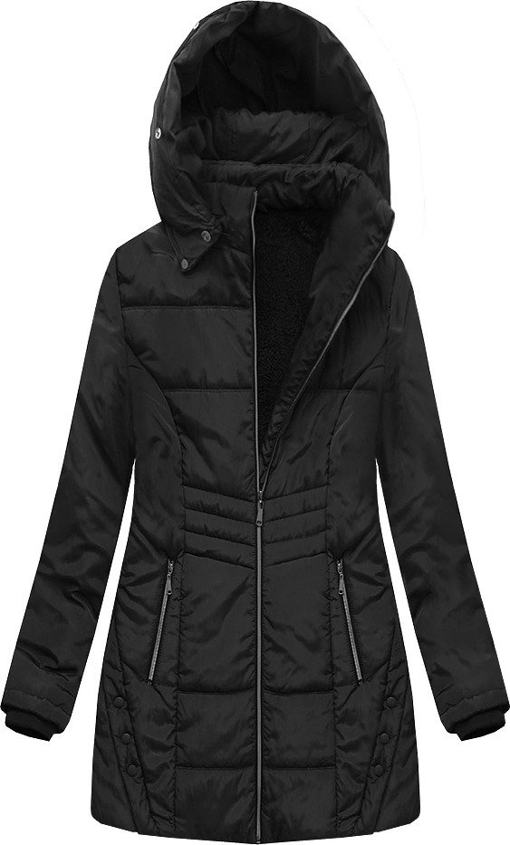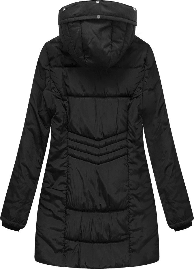 DŁUŻSZA PIKOWANA KURTKA Z KAPTUREM CZARNA (B2625-30)