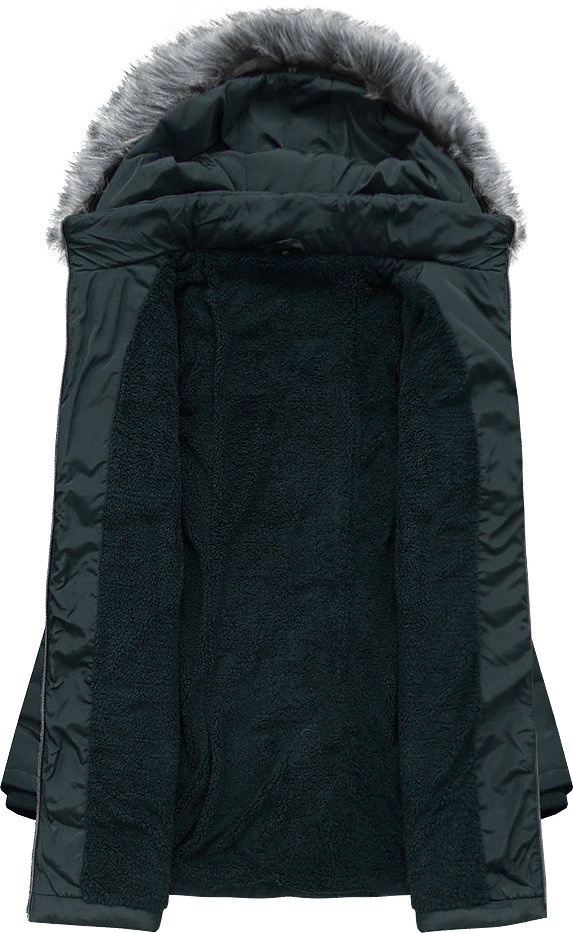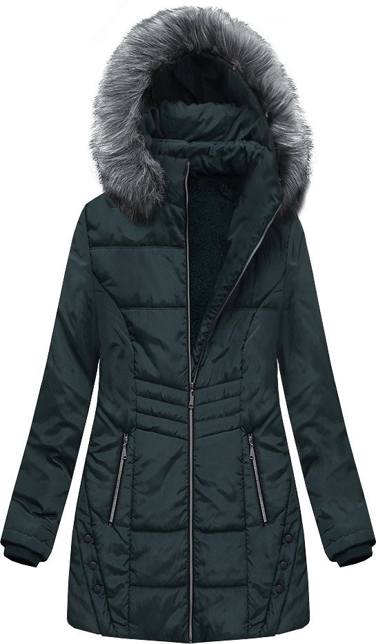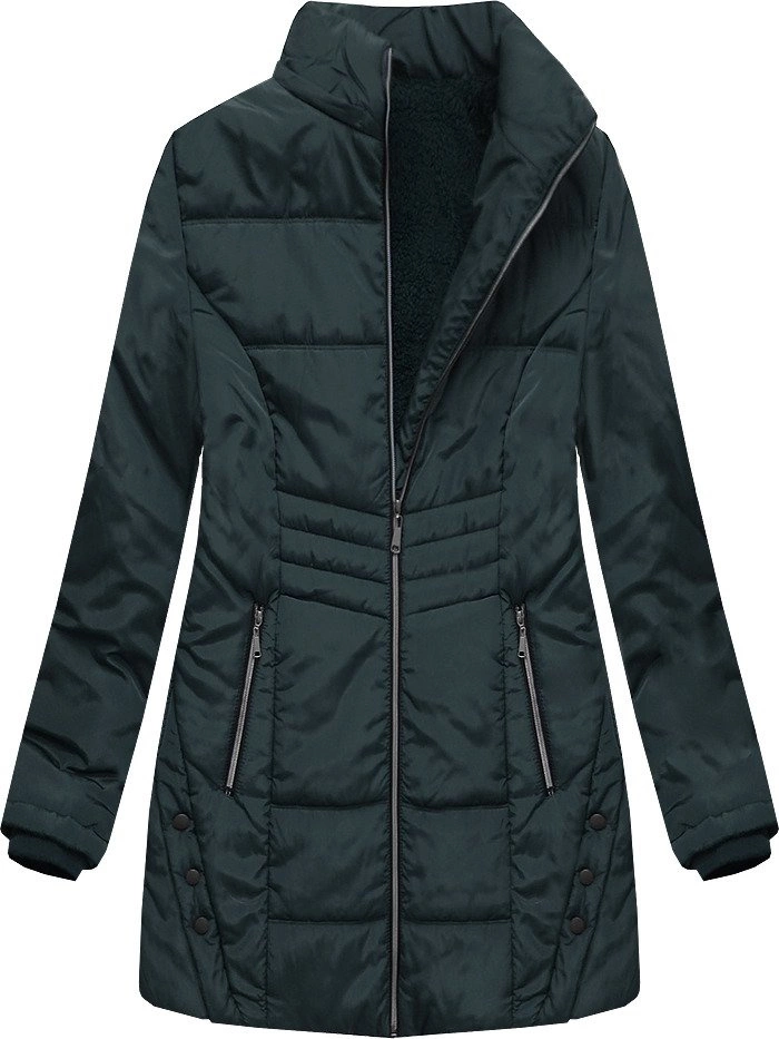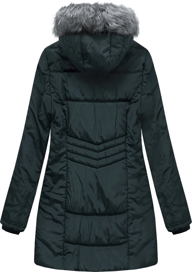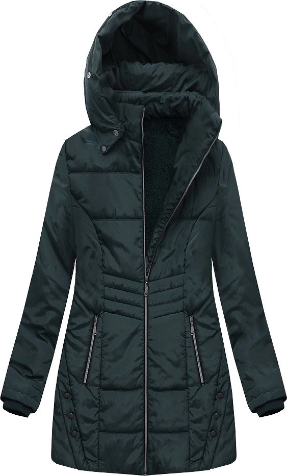 DŁUŻSZA PIKOWANA KURTKA Z KAPTUREM CIEMNOZIELONA (B2625-30)
