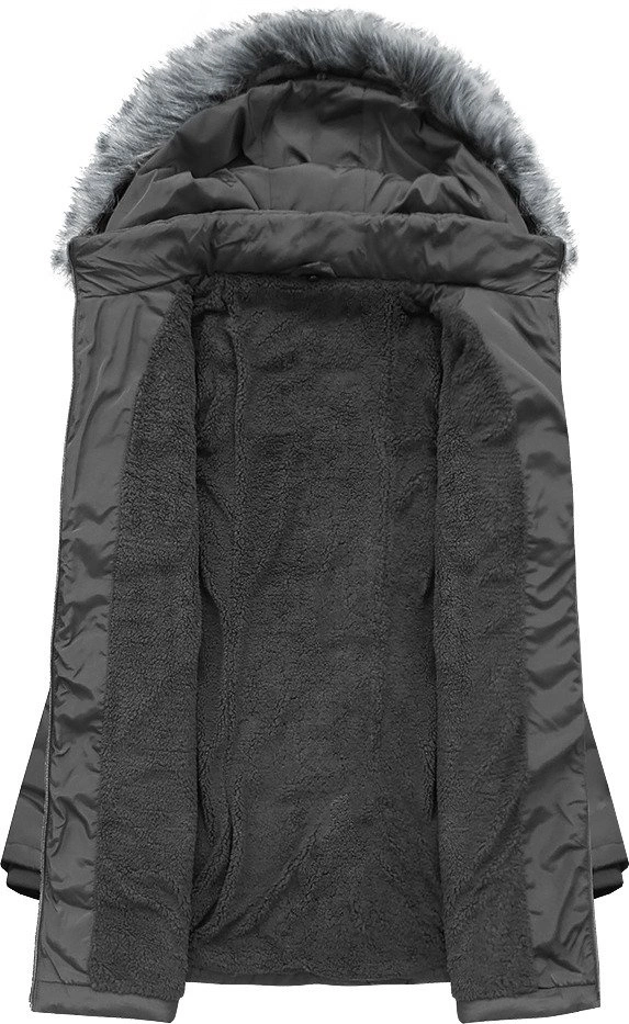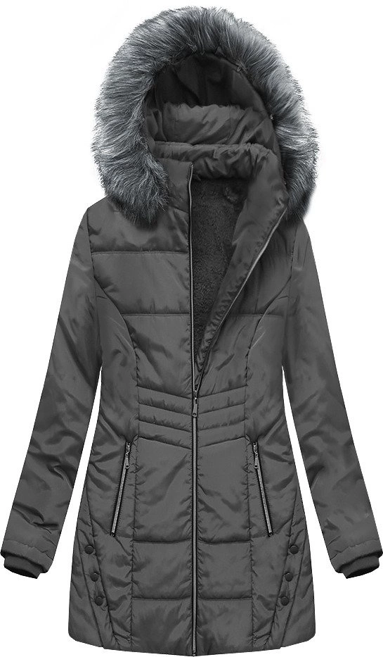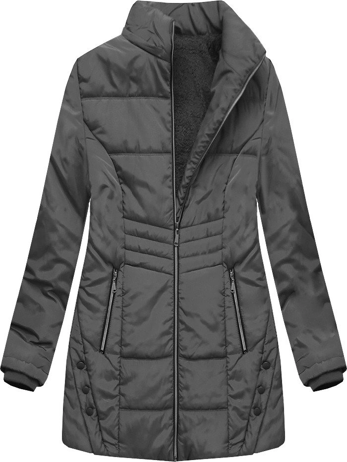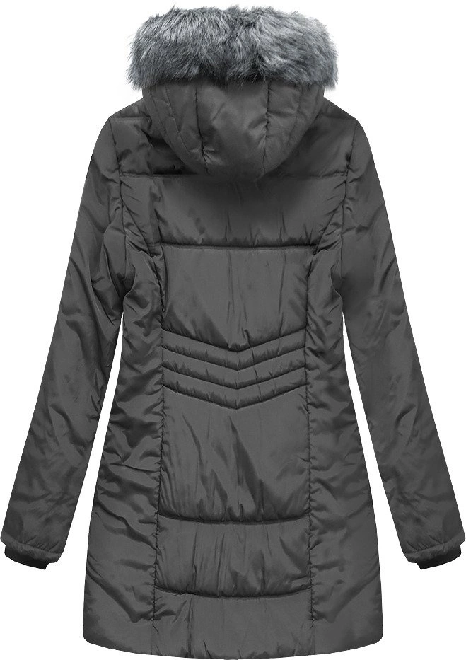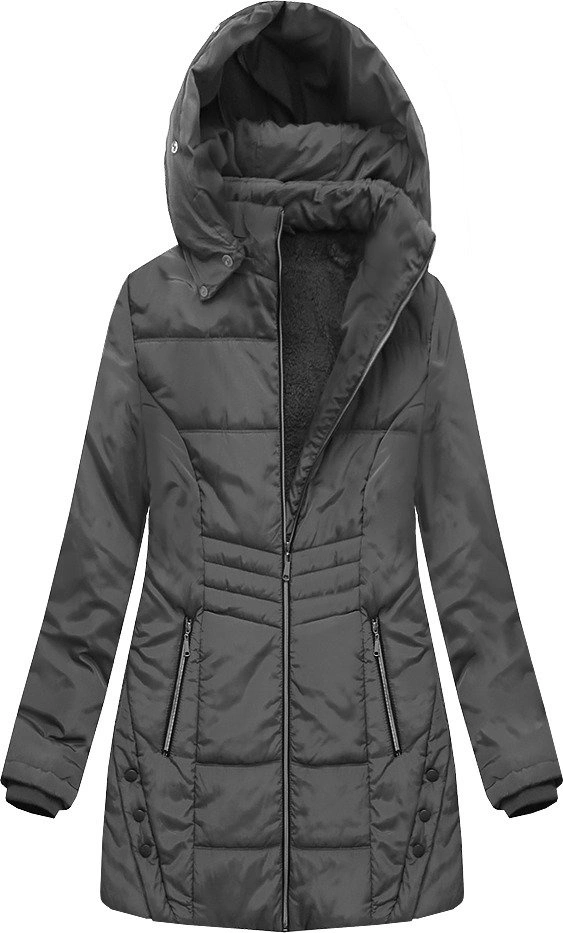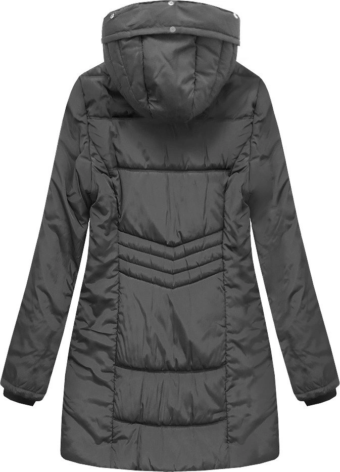 DŁUŻSZA PIKOWANA KURTKA Z KAPTUREM CIEMNOSZARA (B2625-30)