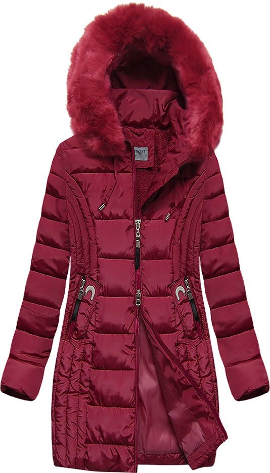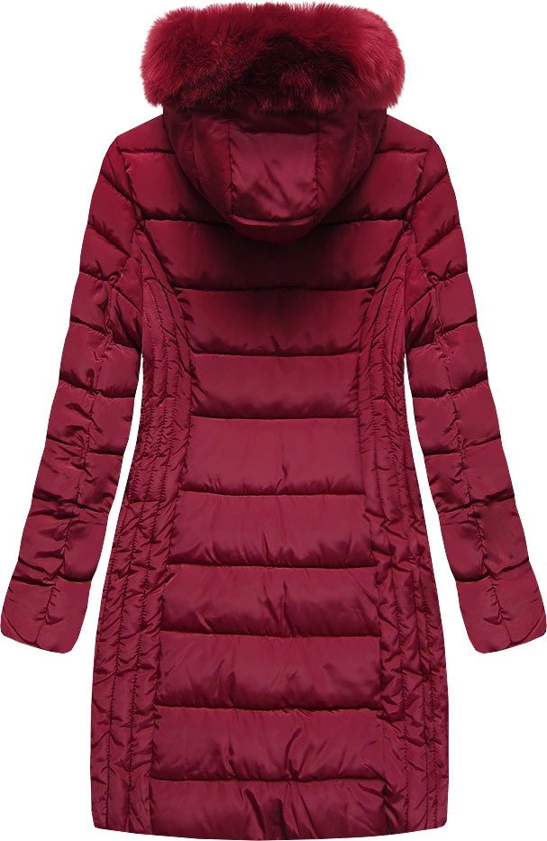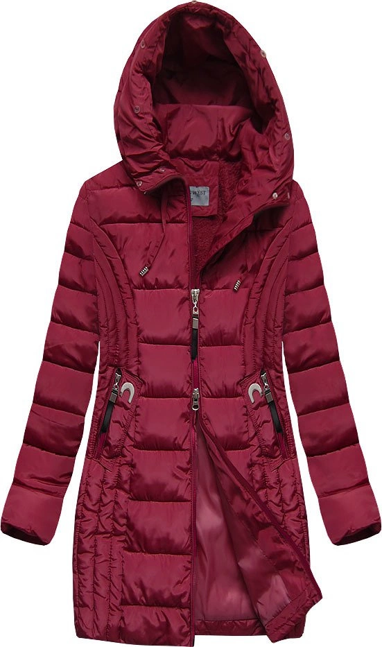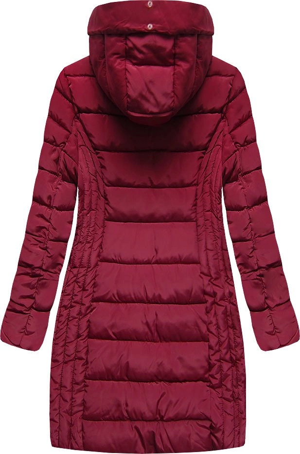 DŁUŻSZA DAMSKA KURTKA Z KAPTUREM BORDOWA (B2620-30)