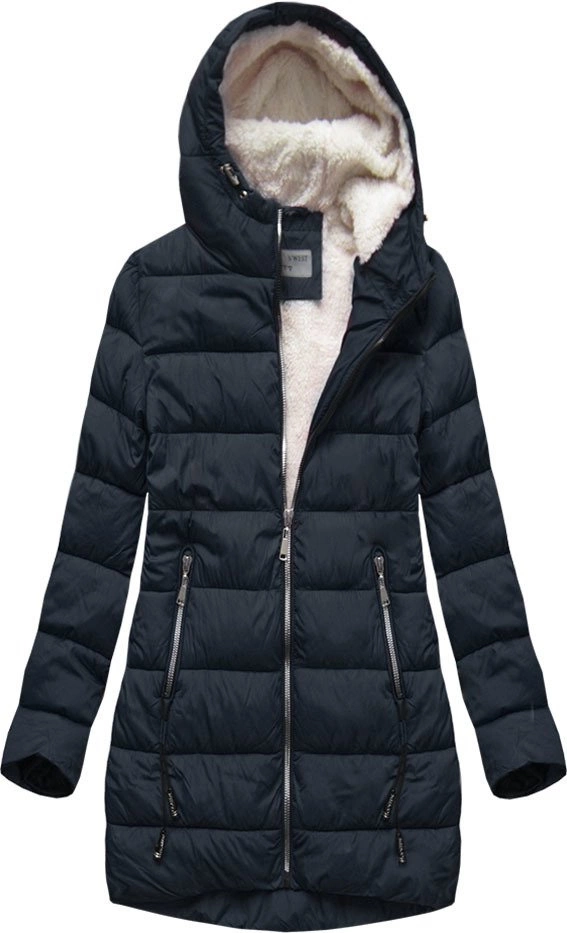 PIKOWANA DAMSKA KURTKA Z KAPTUREM GRANATOWA (B2642)