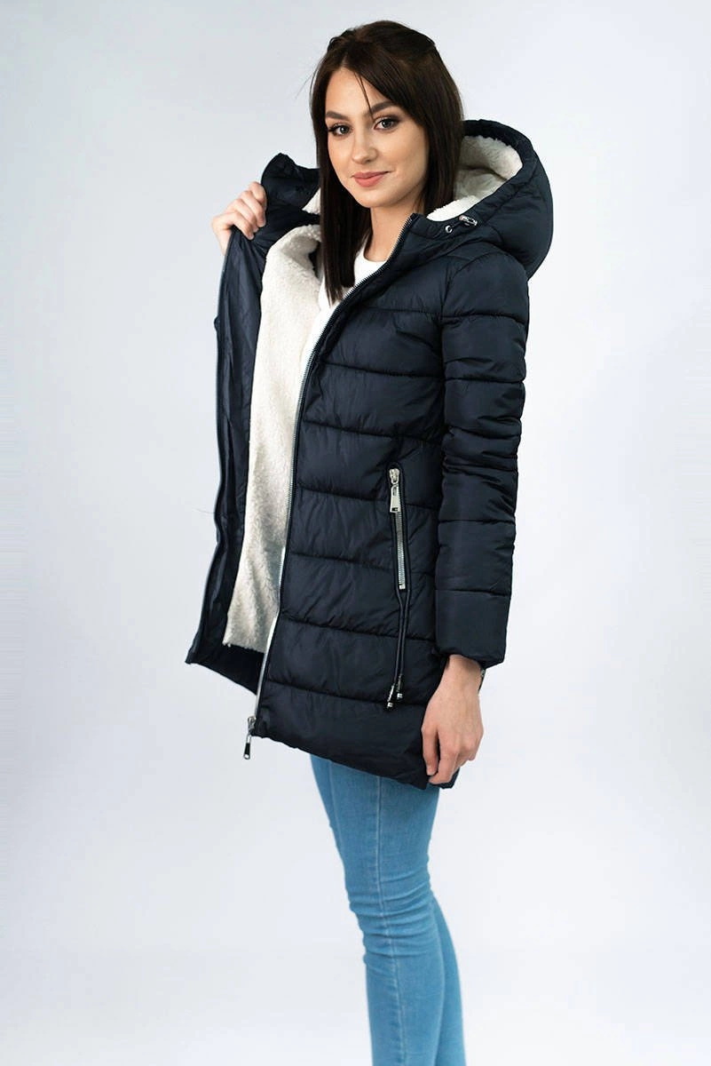 Zobacz więcej w kategorii Kurtki i płaszcze zimoweOpinie o PIKOWANA DAMSKA KURTKA Z KAPTUREM GRANATOWA (B2642)