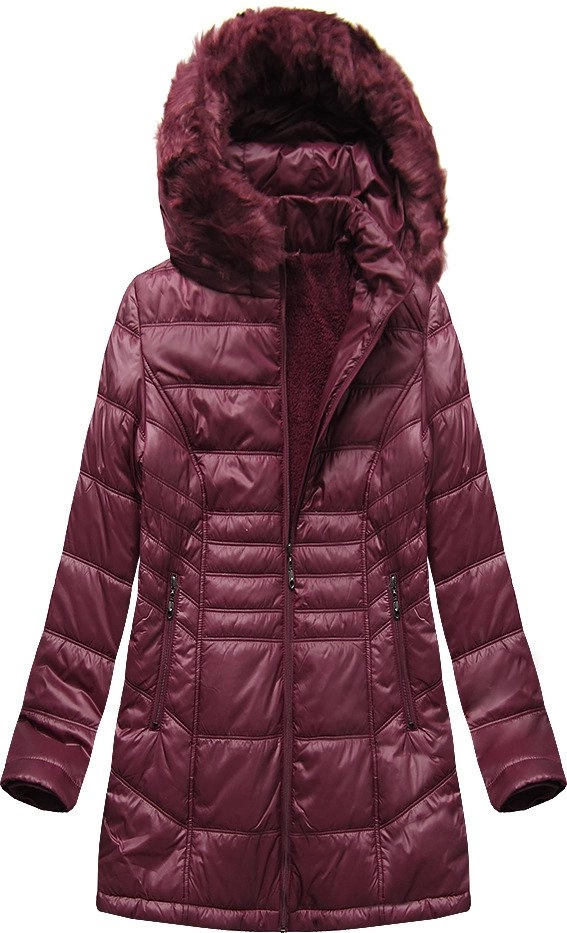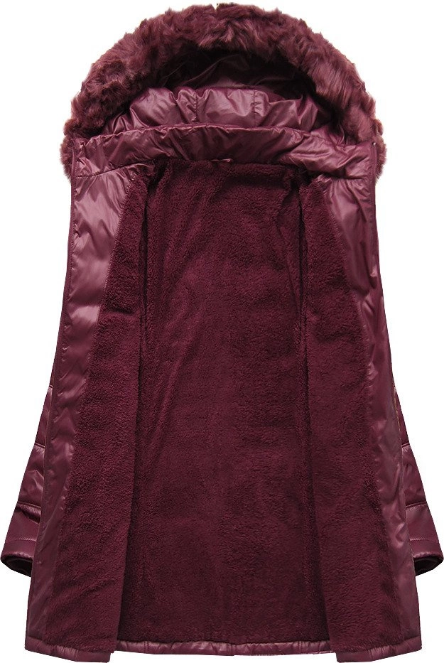 PIKOWANA DAMSKA KURTKA ZIMOWA Z KAPTUREM BORDOWA (B2617-30)