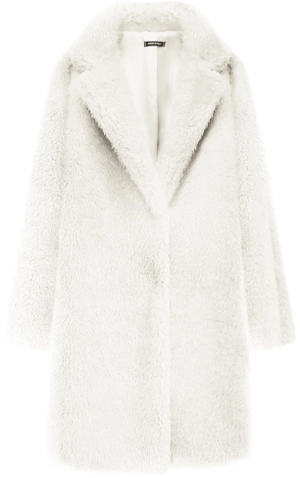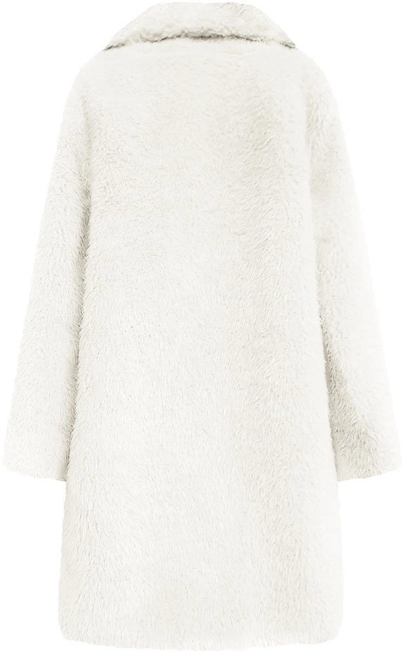 FUTRZANY ZIMOWY DAMSKI PŁASZCZ Z KIESZENIAMI ECRU (461ART)