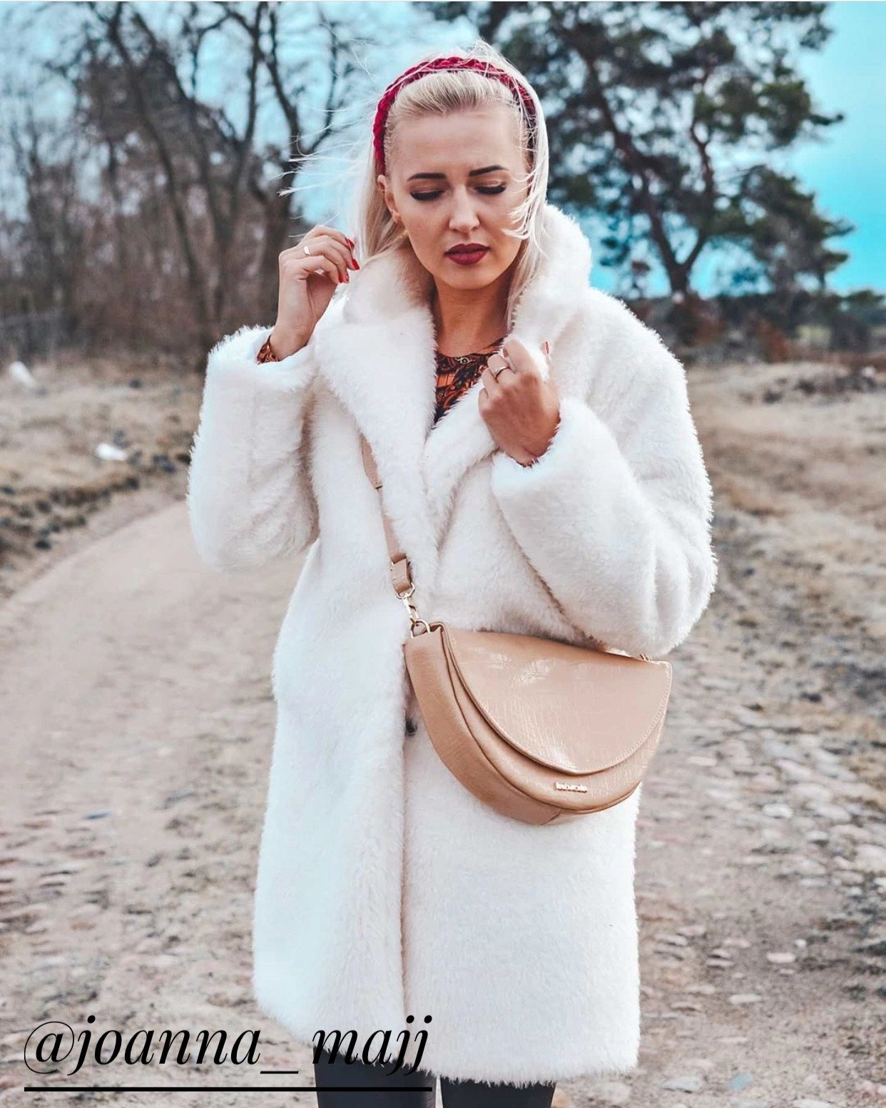 Opinie o FUTRZANY ZIMOWY DAMSKI PŁASZCZ Z KIESZENIAMI ECRU (461ART)
