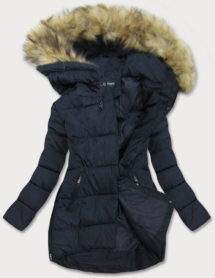 DAMSKA PIKOWANA ZIMOWA KURTKA Z KAPTUREM GRANATOWA (X859X)