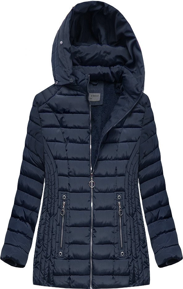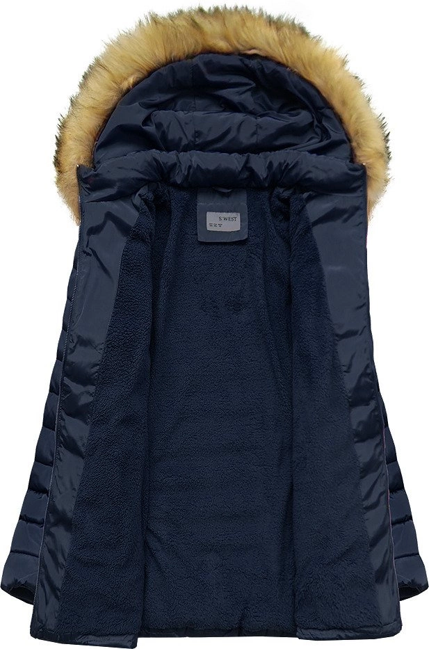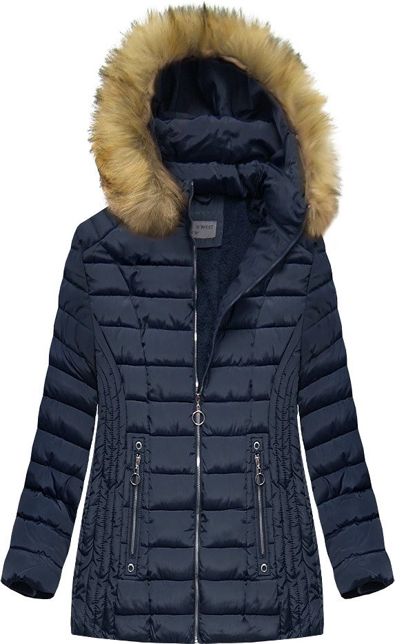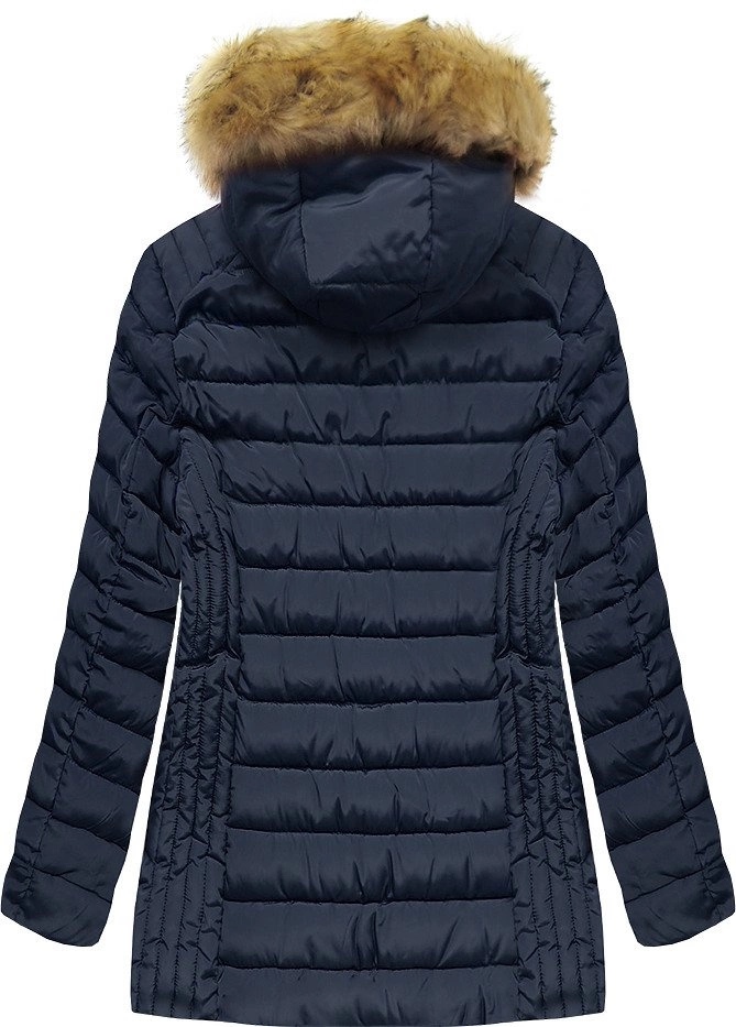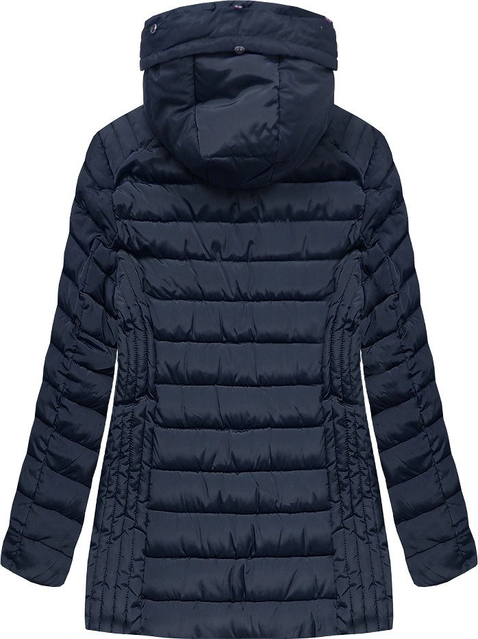 PIKOWANA DAMSKA KURTKA ZIMOWA Z KAPTUREM GRANATOWA (B2630-30)