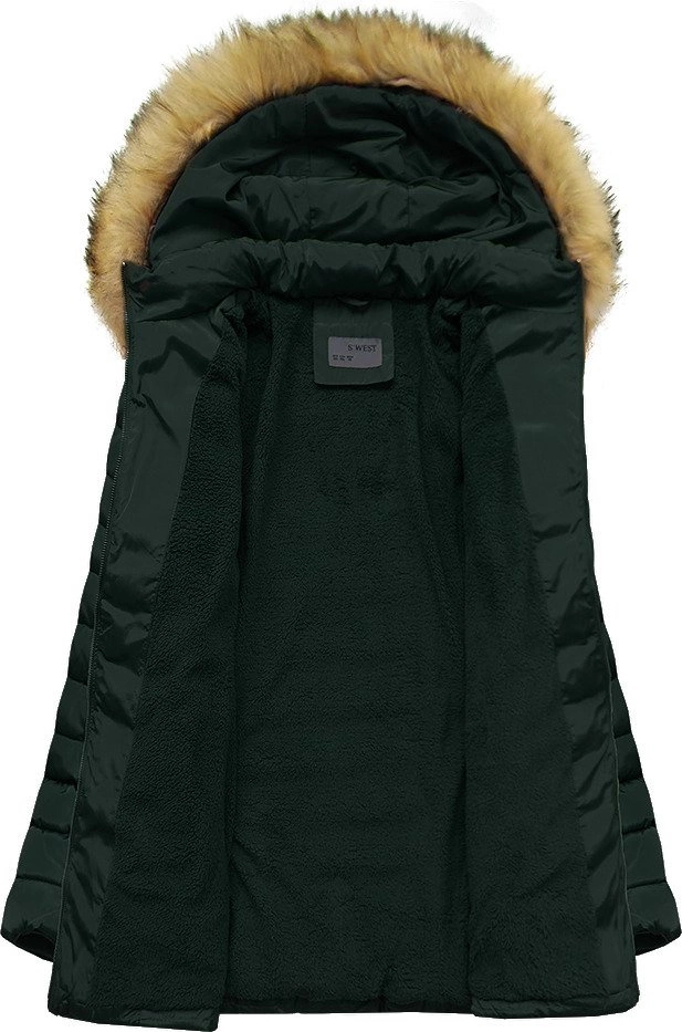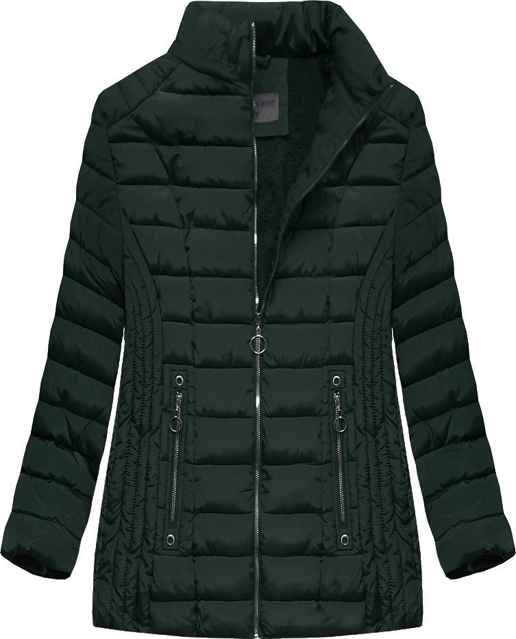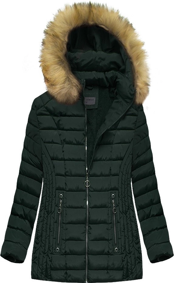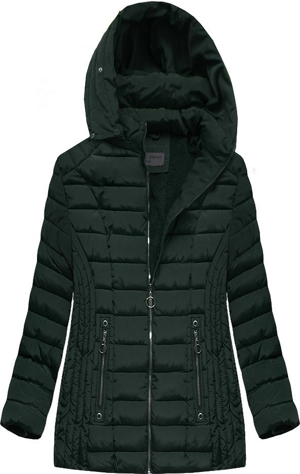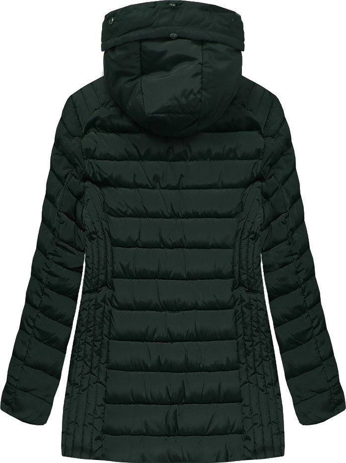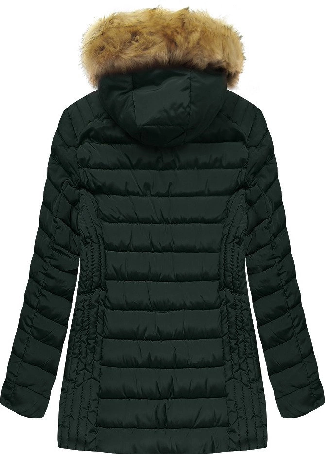PIKOWANA DAMSKA KURTKA ZIMOWA Z KAPTUREM CIEMNOZIELONA (B2630-30)