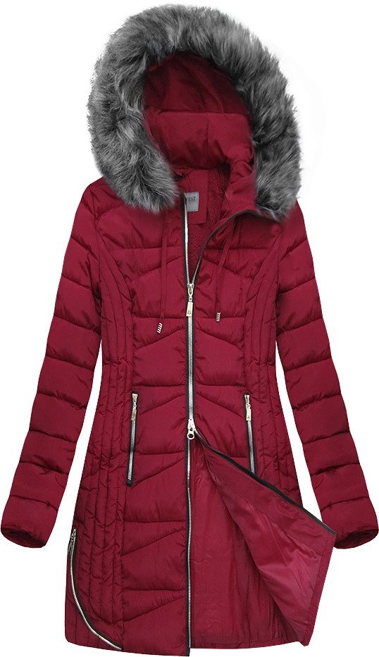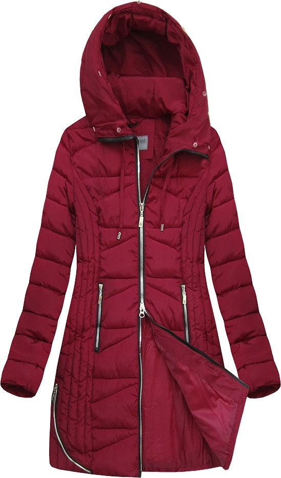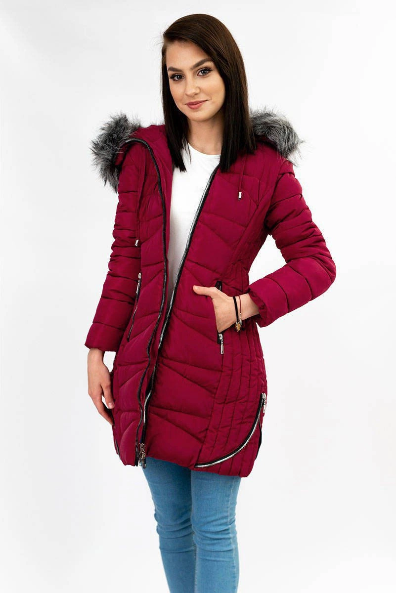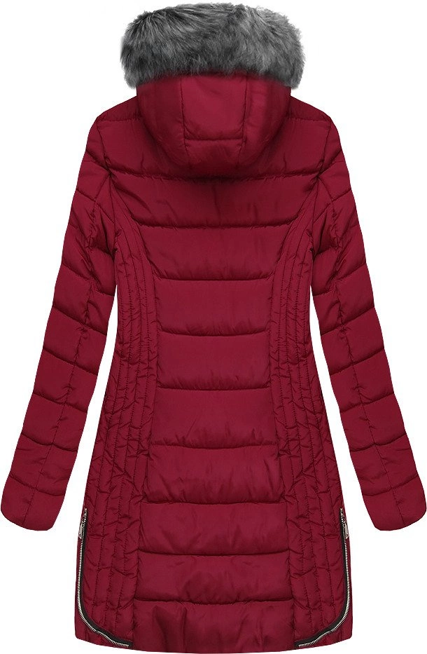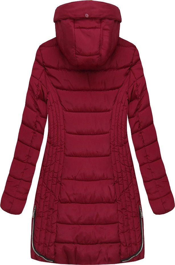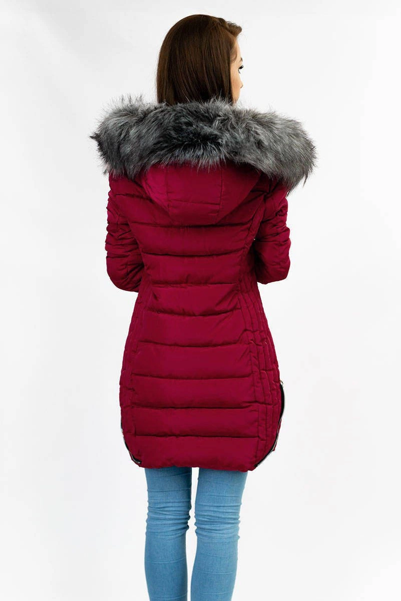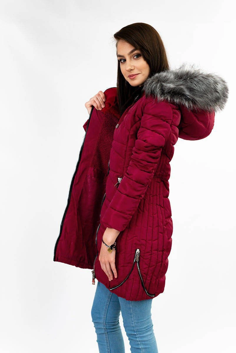 PIKOWANA DAMSKA KURTKA ZIMOWA Z KAPTUREM BORDOWA (B2632-30)