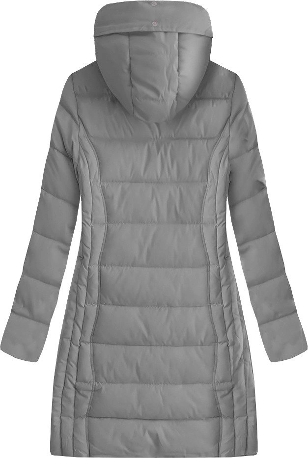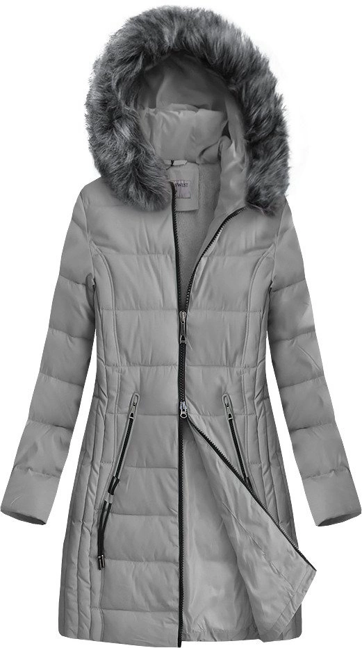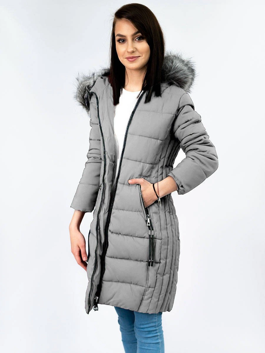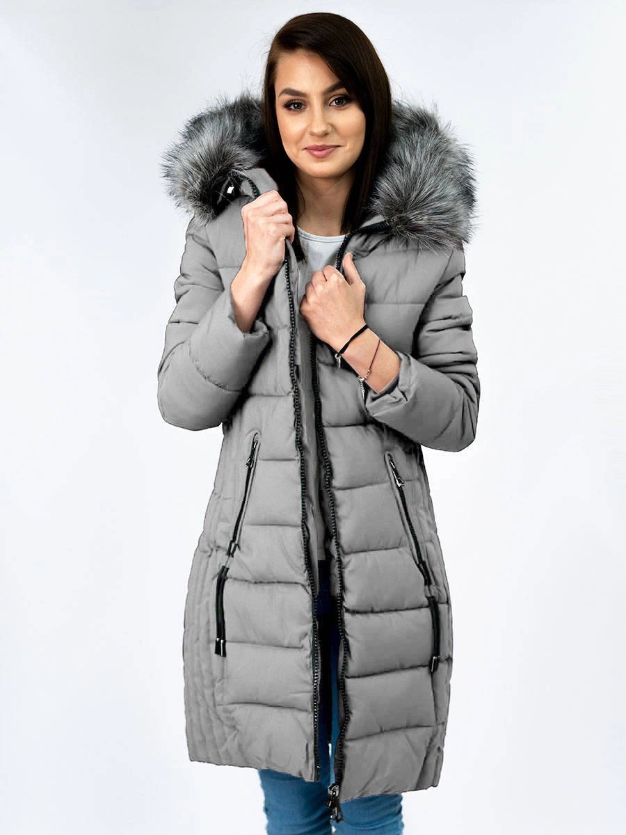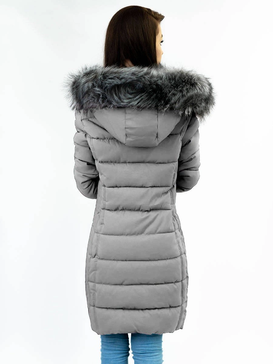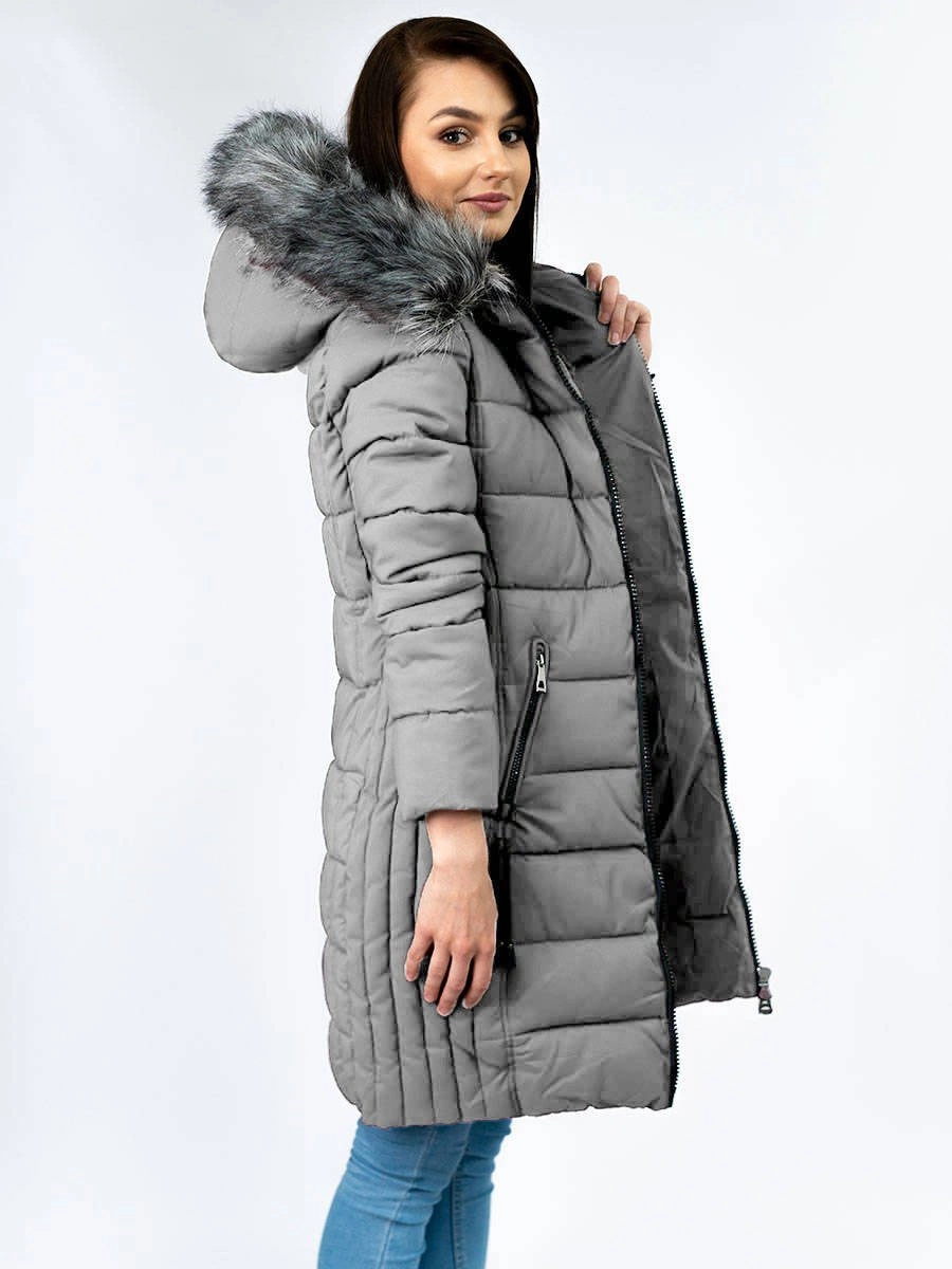 PIKOWANA DAMSKA ZIMOWA KURTKA Z KAPTUREM SZARA (B9501)