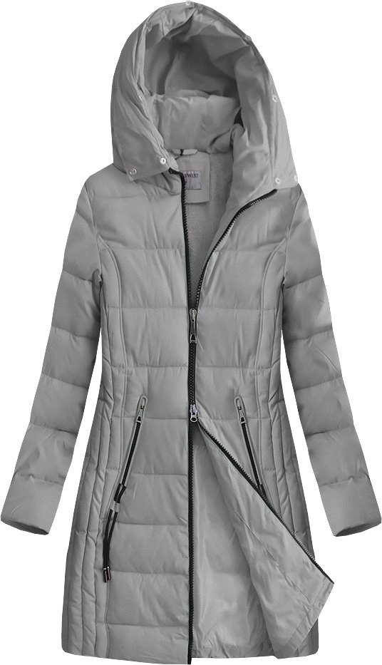 Opinie o PIKOWANA DAMSKA ZIMOWA KURTKA Z KAPTUREM SZARA (B9501)
