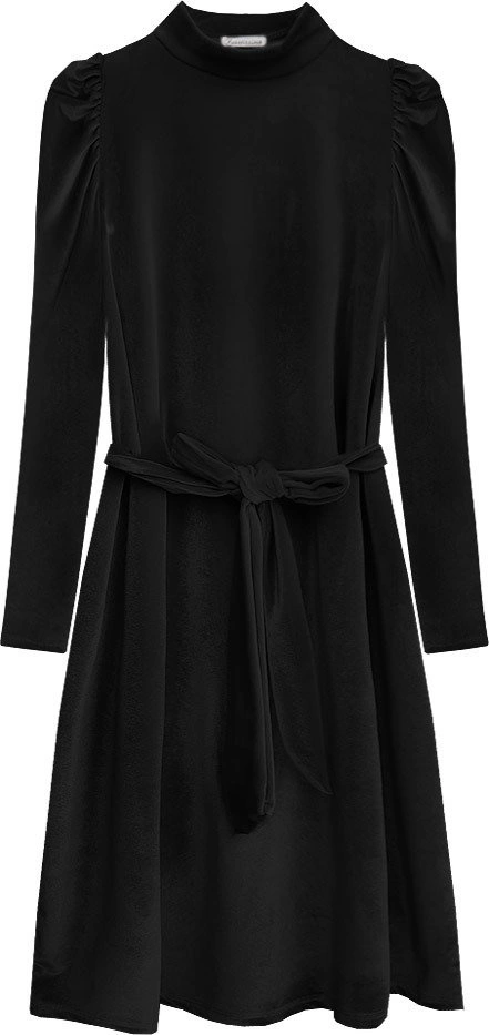 WELUROWA SUKIENKA WIĄZANA W TALII CZARNA (487ART)