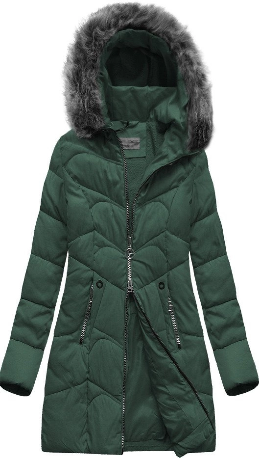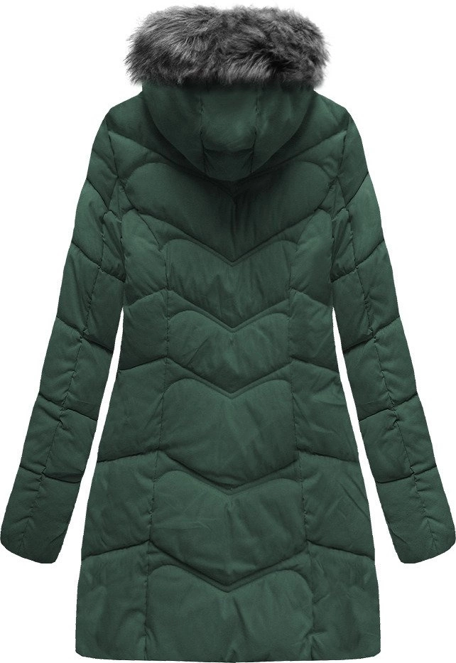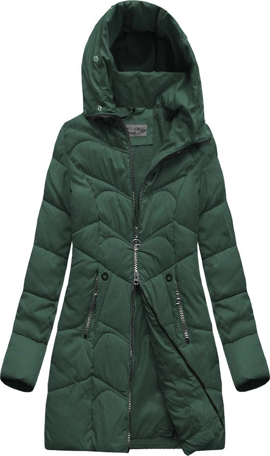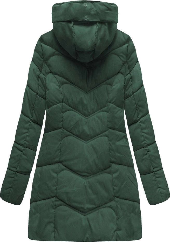 DŁUŻSZA PIKOWANA KURTKA Z KAPTUREM CIEMNOZIELONA (XR2643X)