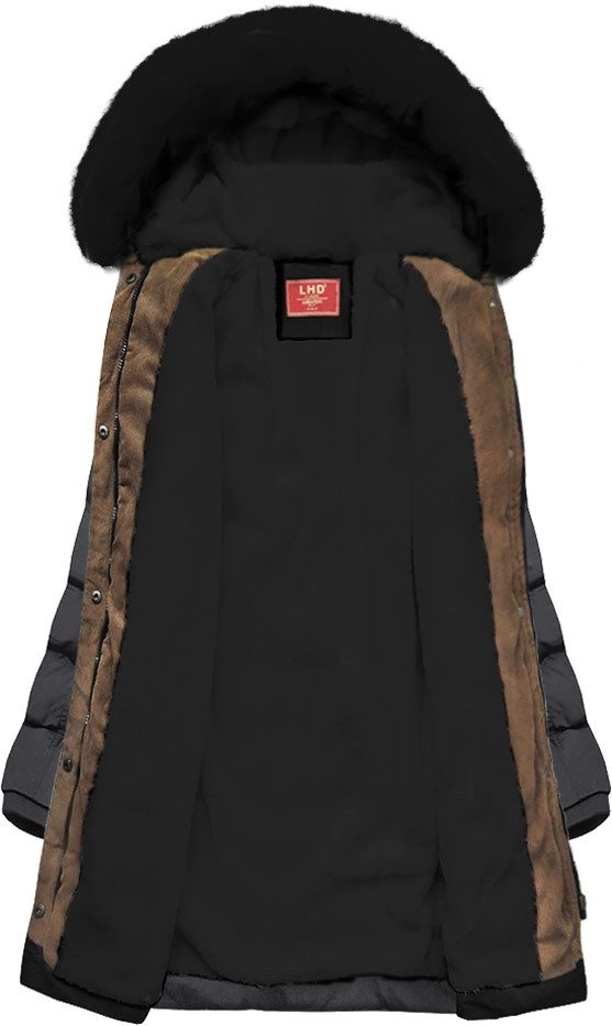 PIKOWANA DAMSKA KURTKA ZIMOWA Z KAPTUREM GRAFITOWA (A913)