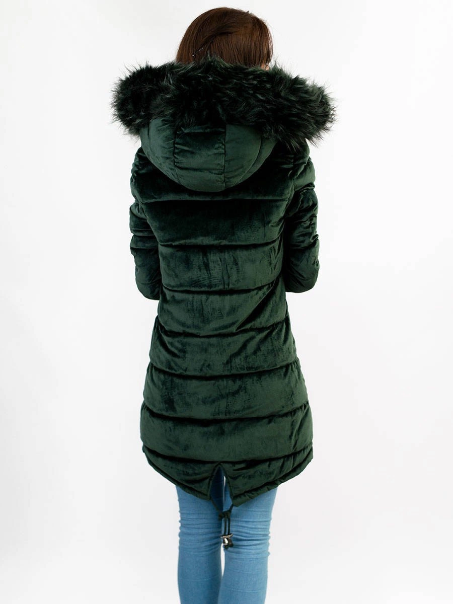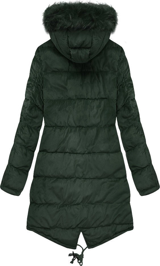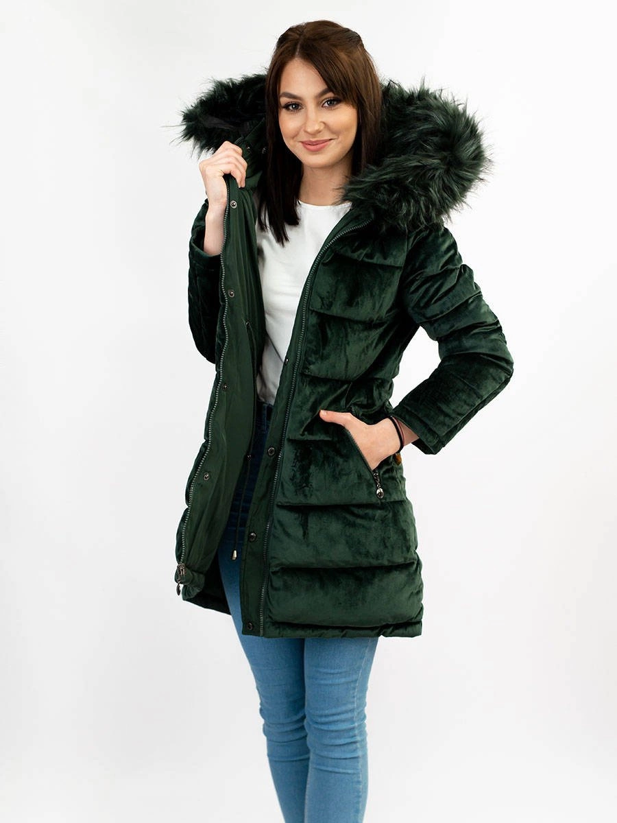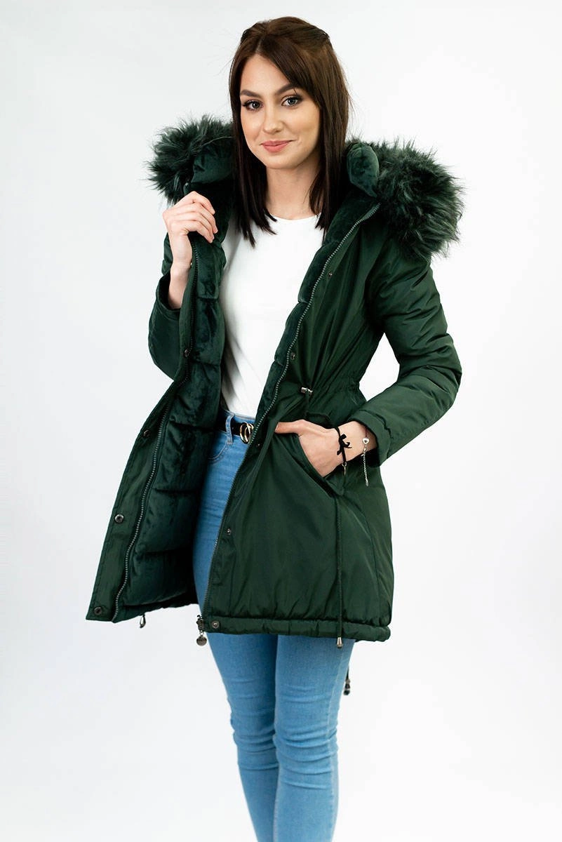 DWUSTRONNA DAMSKA PARKA ZIMOWA WELUROWA CIEMNOZIELONA (7911)