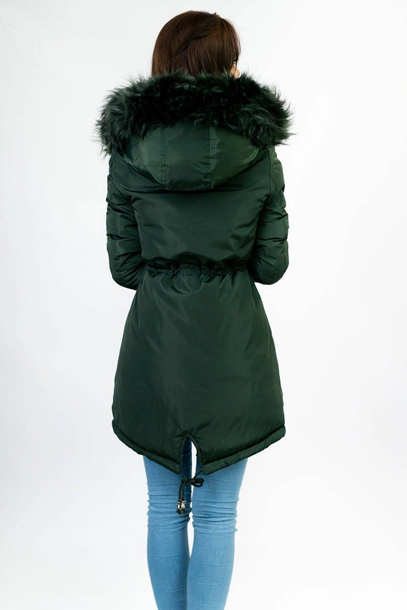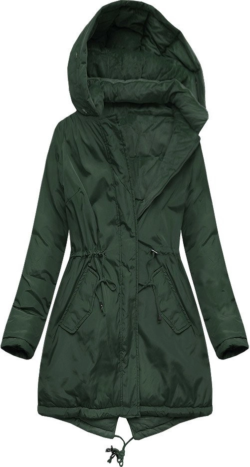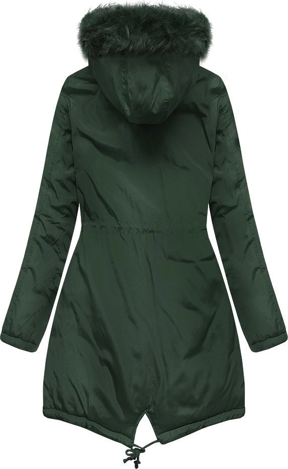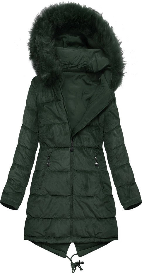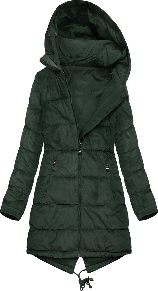 DWUSTRONNA DAMSKA PARKA ZIMOWA WELUROWA CIEMNOZIELONA (7911)