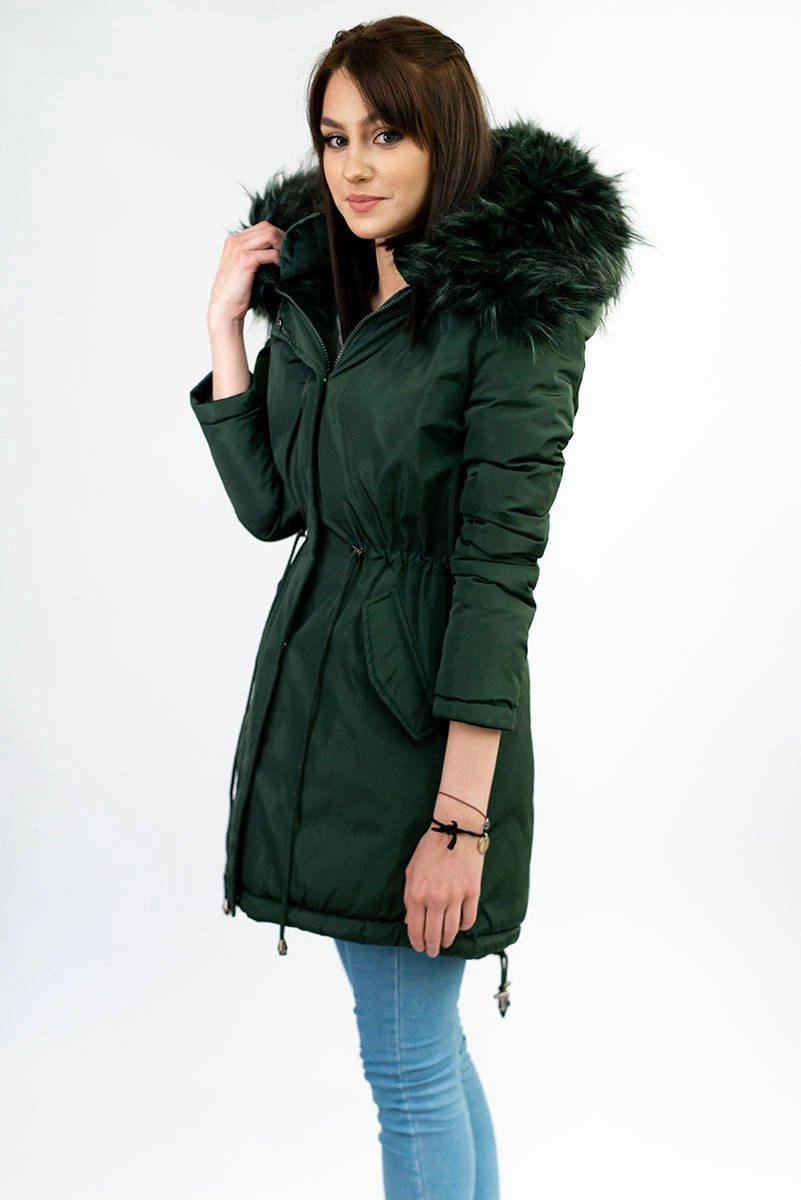 Opinie o DWUSTRONNA DAMSKA PARKA ZIMOWA WELUROWA CIEMNOZIELONA (7911)