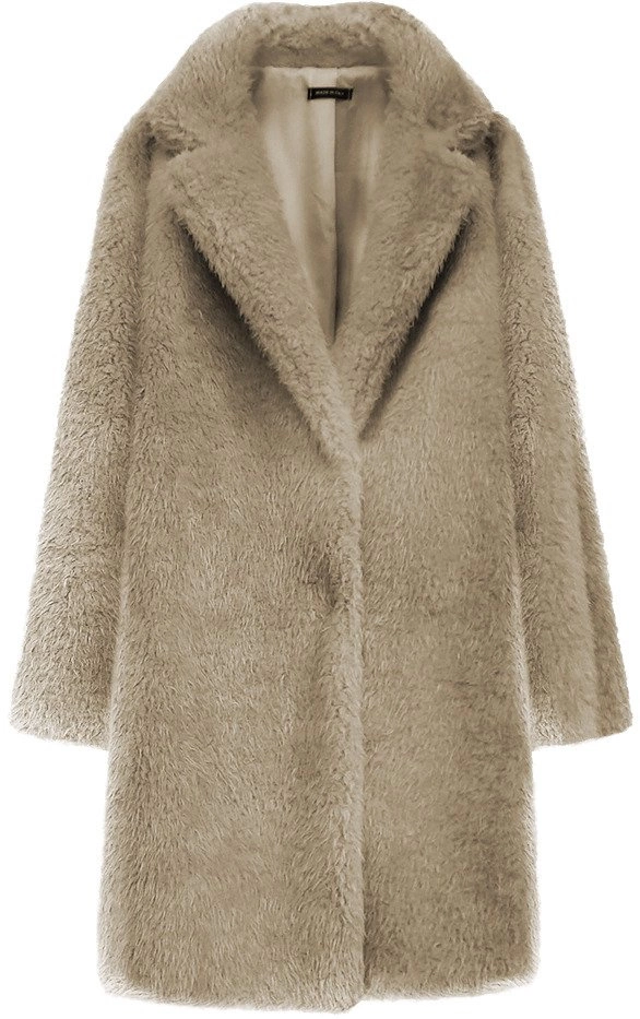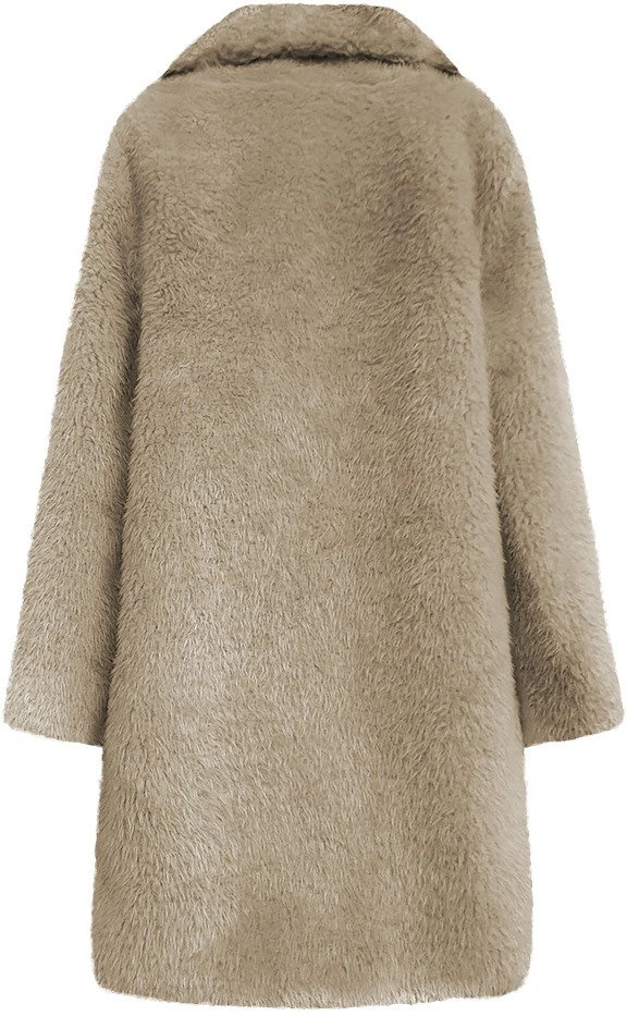 FUTRZANY ZIMOWY DAMSKI PŁASZCZ Z KIESZENIAMI BEŻOWY (461ART)