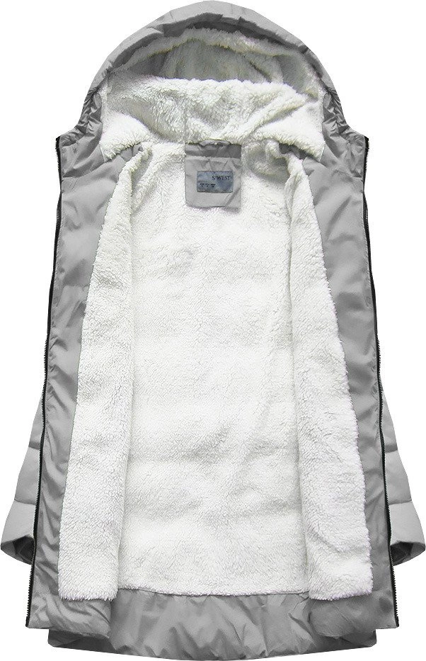 DAMSKA DŁUŻSZA KURTKA ZIMOWA Z KAPTUREM SZARA (B2642)