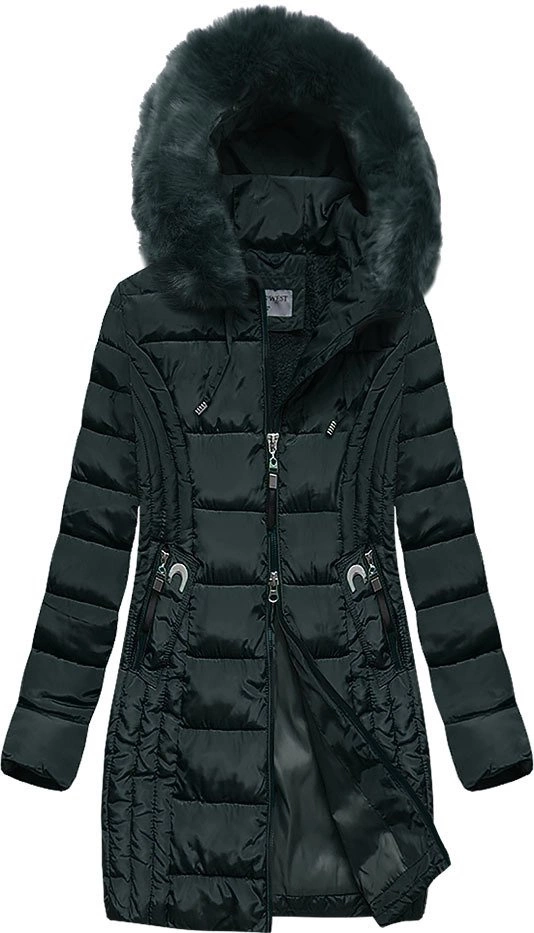 DAMSKA DŁUŻSZA KURTKA ZIMOWA Z KAPTUREM ZIELEŃ (R2620)