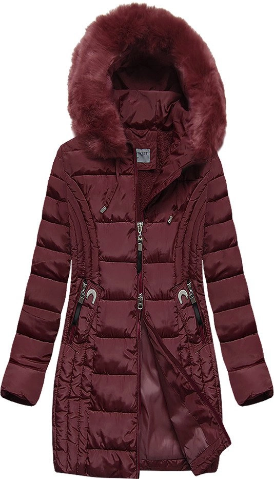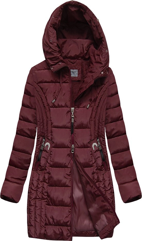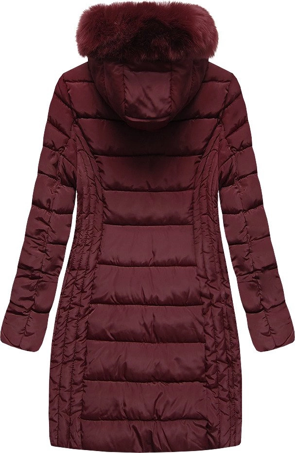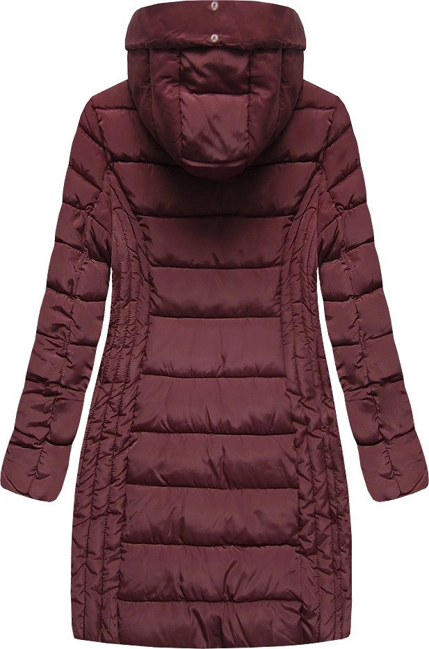 DAMSKA DŁUŻSZA KURTKA ZIMOWA Z KAPTUREM BORDOWA (R2620)