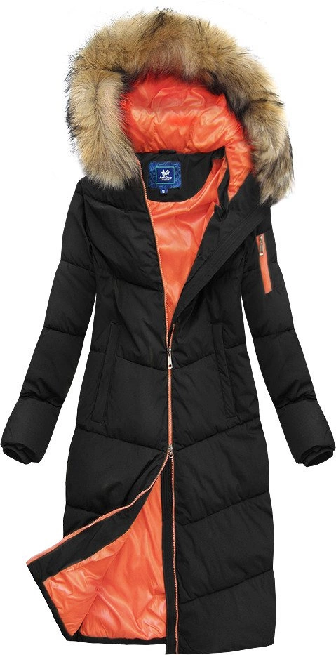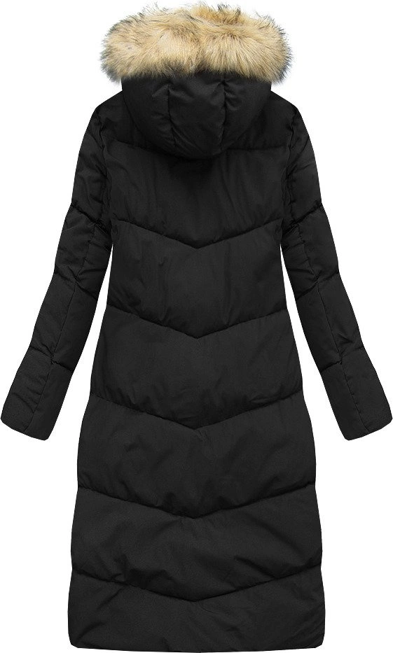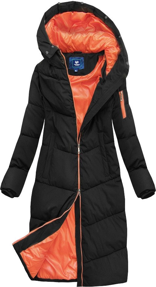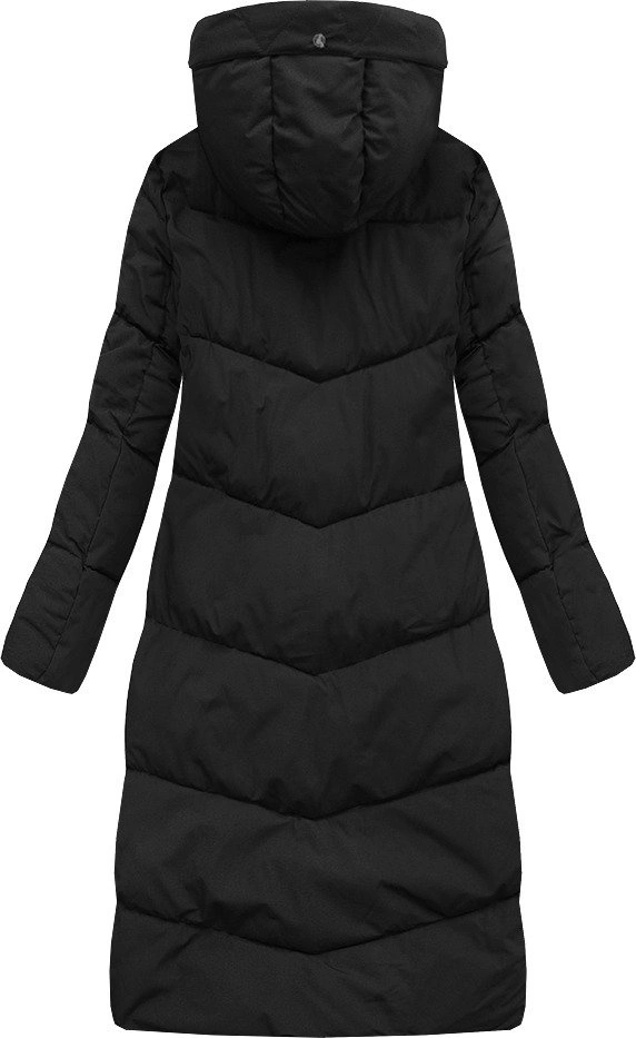 PROSTY PŁASZCZ ZIMOWY DAMSKI Z KAPTUREM CZARNY (J9-007)
