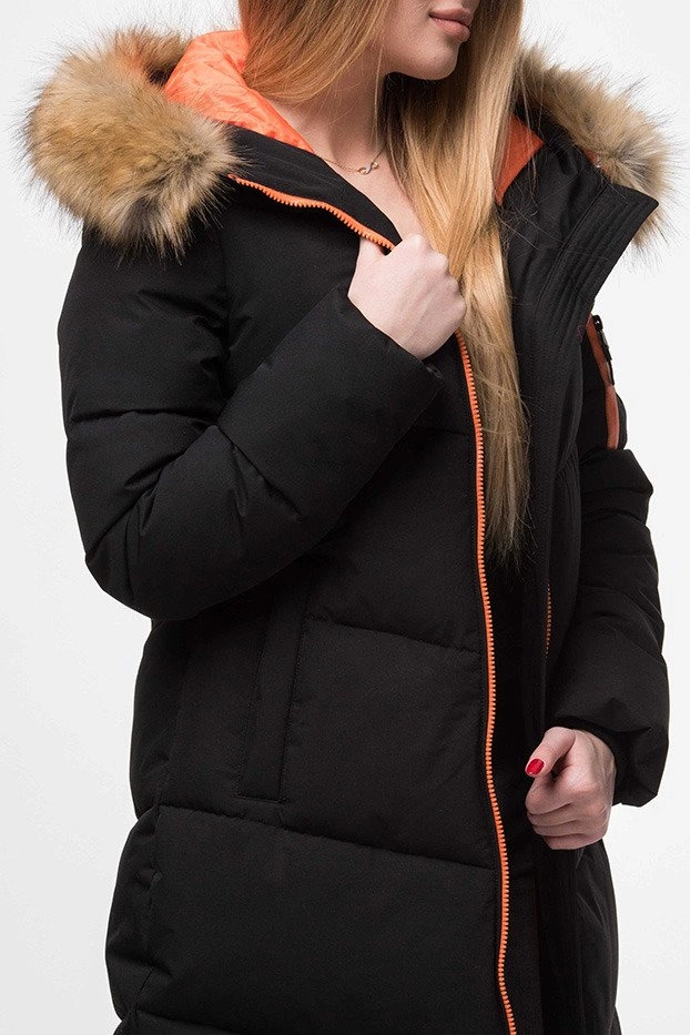 - Posiada stójkę przechodzącą w nieodpinany kaptur z futerkiem