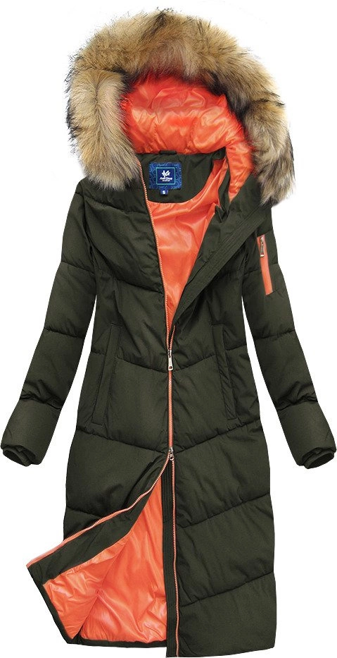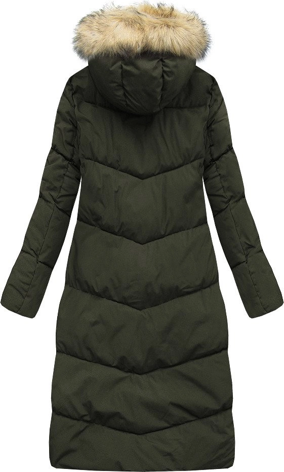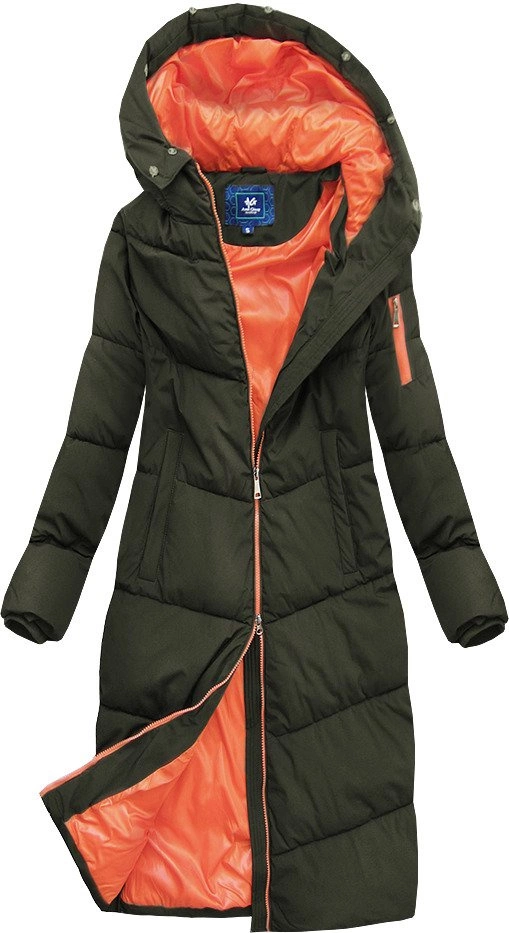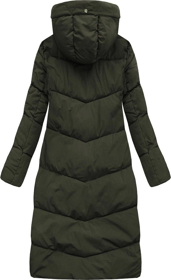 PROSTY PŁASZCZ ZIMOWY DAMSKI Z KAPTUREM KHAKI (J9-007)