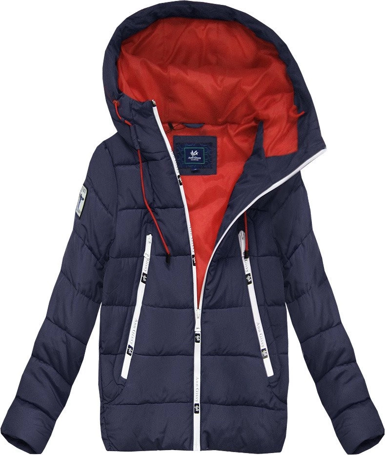 DAMSKA KRÓTKA KURTKA ZIMOWA Z KAPTUREM GRANATOWA (M8-526)