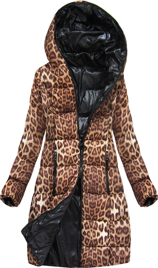 DWUSTRONNA KURTKA W PANTERKĘ BRĄZOWO-CZARNA (J9-009)