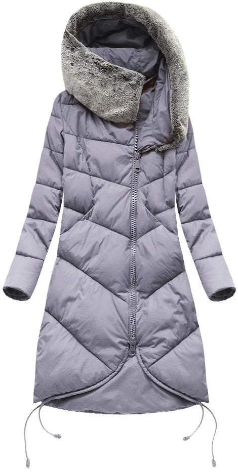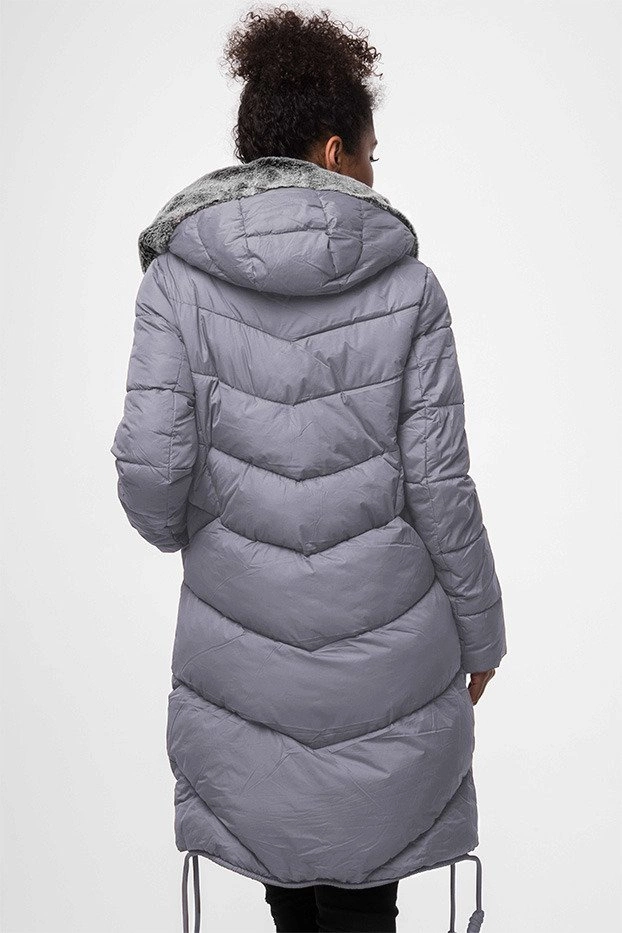 DŁUGA KURTKA ZIMOWA Z KAPTUREM WRZOSOWA (J18-002)