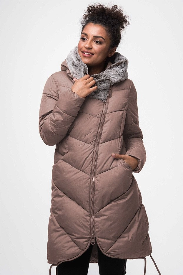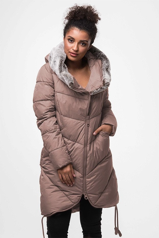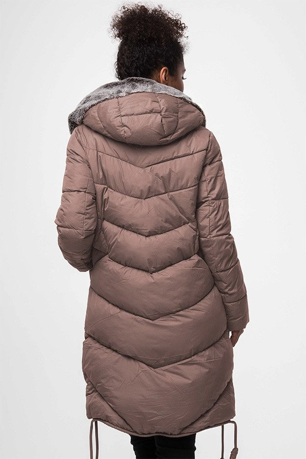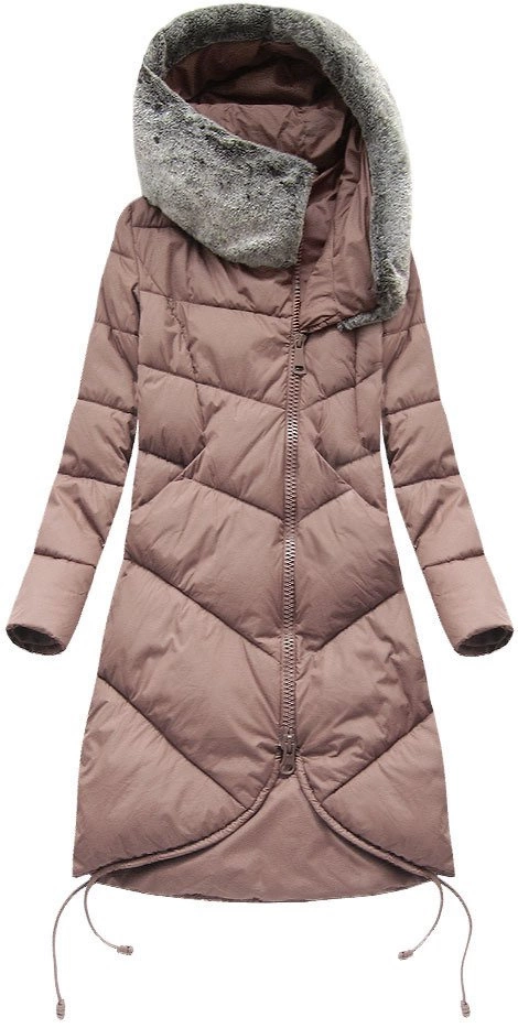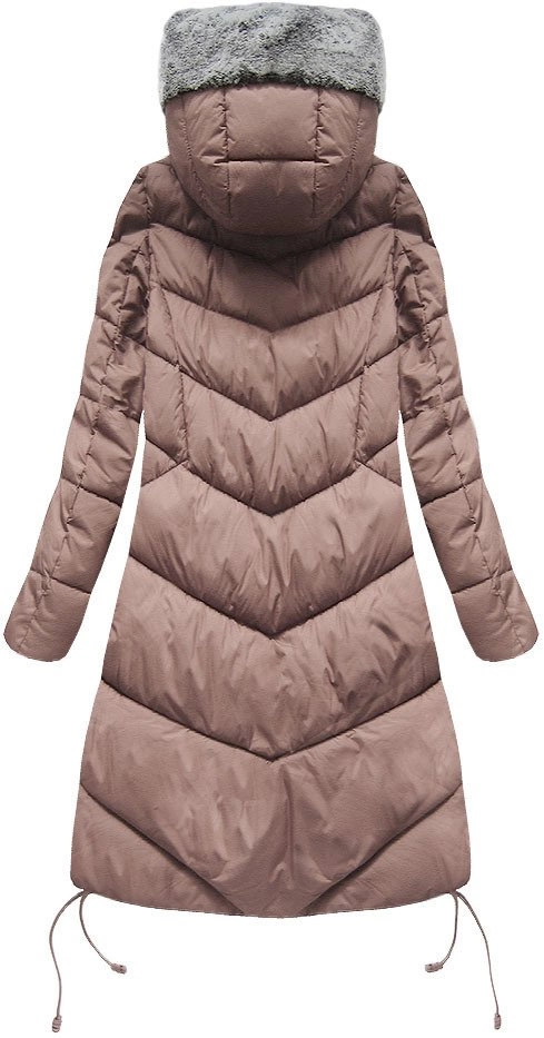 DŁUGA KURTKA ZIMOWA Z KAPTUREM ANTYCZNY RÓŻ (J18-002)