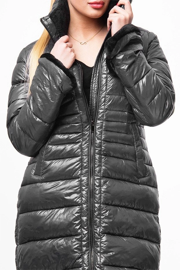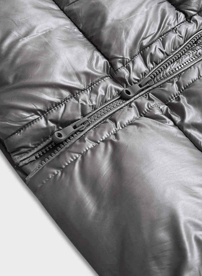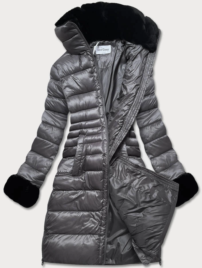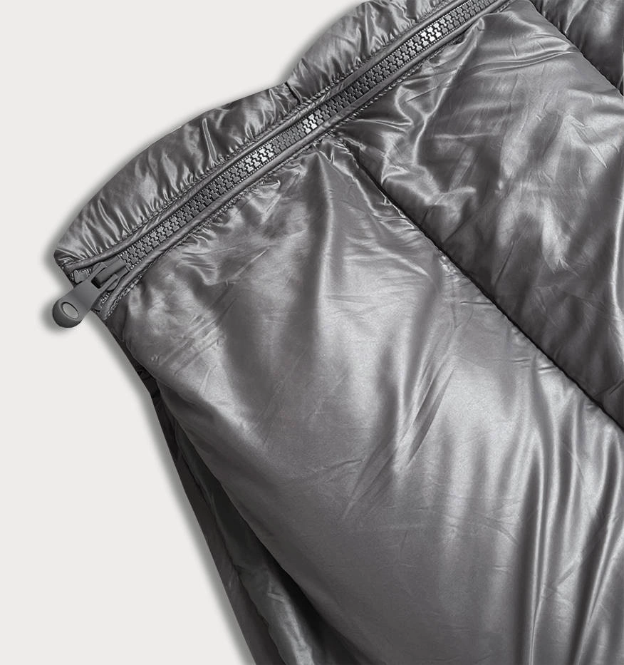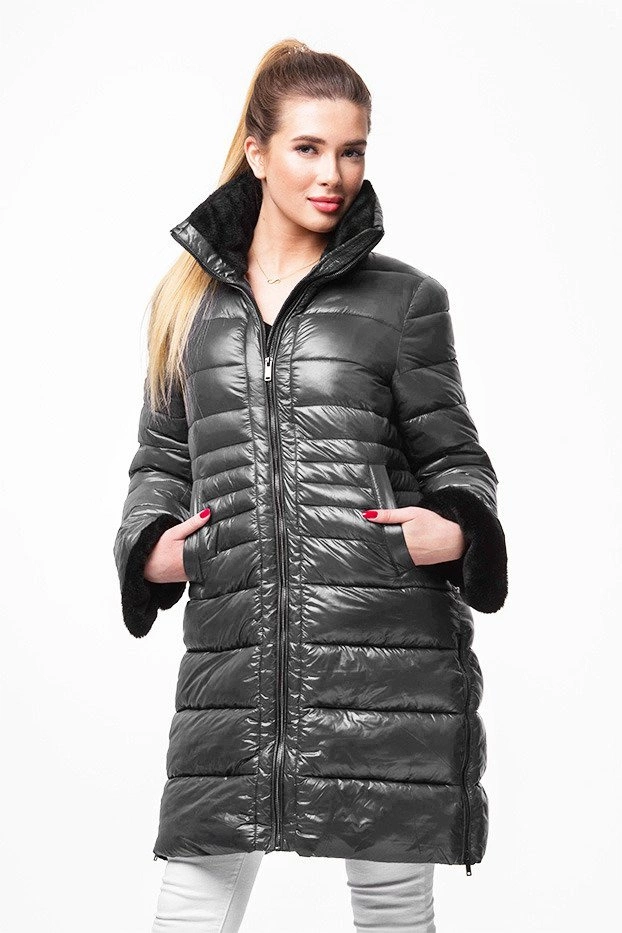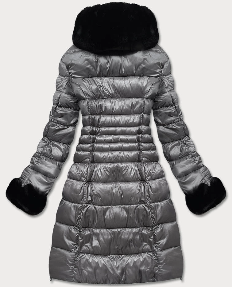 DŁUŻSZA DAMSKA PIKOWANA KURTKA ZIMOWA SZARA (J19-017)