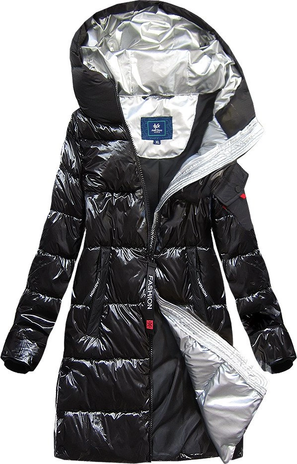 BŁYSZCZĄCA KURTKA Z KAPTUREM CZARNA 2 (J9-003)