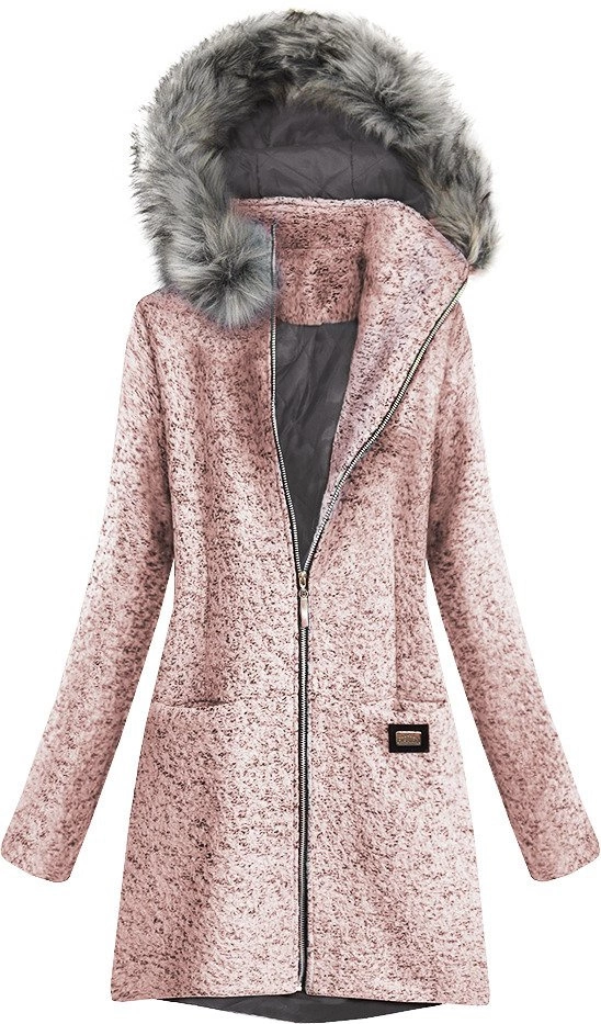 KRÓTKI PŁASZCZ ZIMOWY Z KAPTUREM RÓŻOWY (516/3ART)