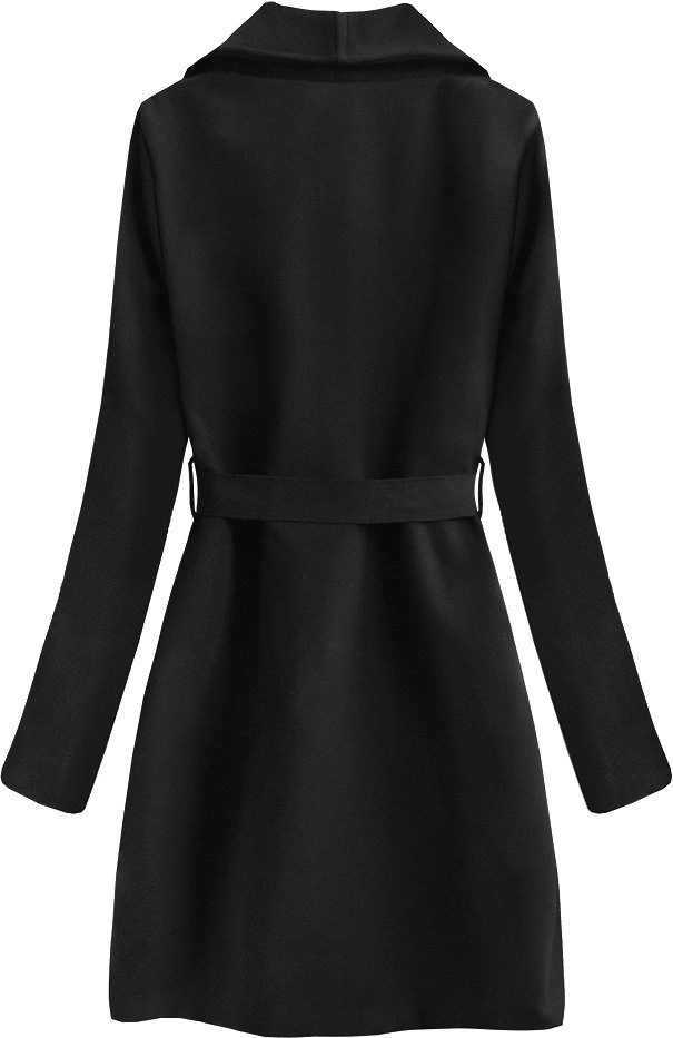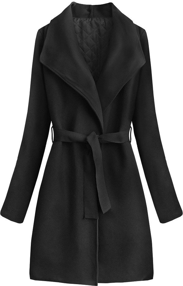 WIĄZANY PŁASZCZ Z KOŁNIERZEM CZARNY (534ART)