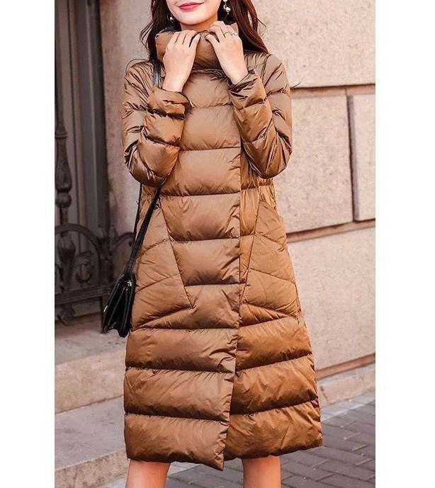 DŁUGA KURTKA DAMSKA PRZEJŚCIOWA BRĄZOWA (2020)
