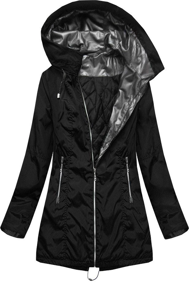 DŁUŻSZA KURTKA Z KAPTUREM CZARNA (B9515)