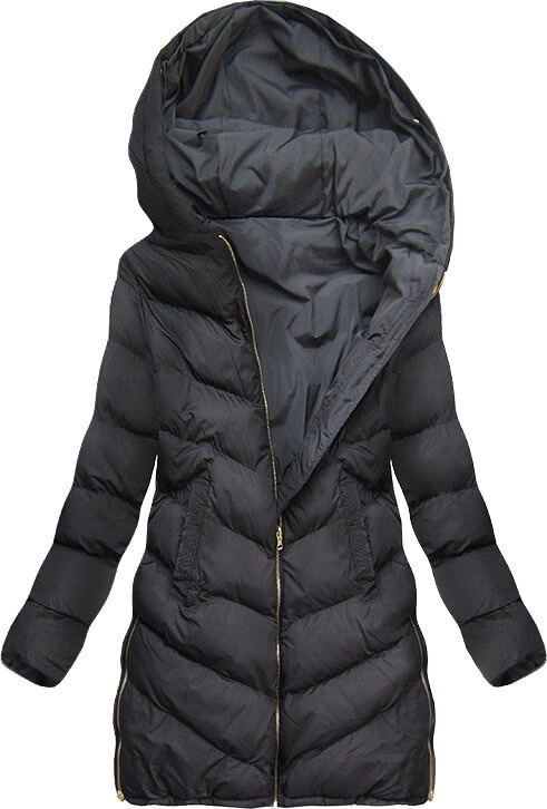 DWUSTRONNA PARKA Z KAPTUREM GRAFITOWO-CZARNA (MODEL16)