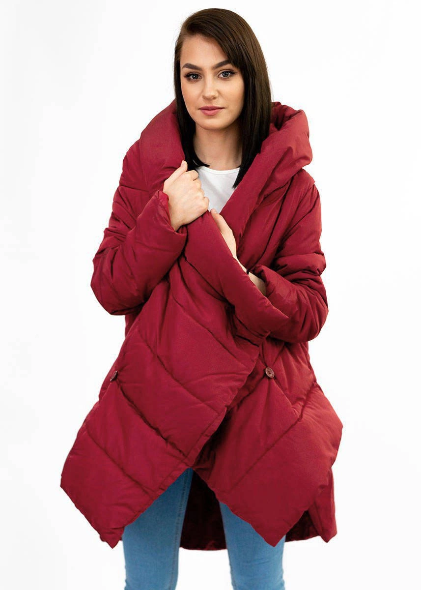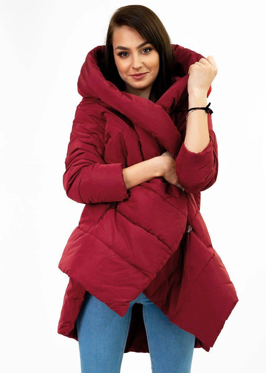 ASYMETRYCZNA DAMSKA KURTKA ZIMOWA CZERWONA (700ART)