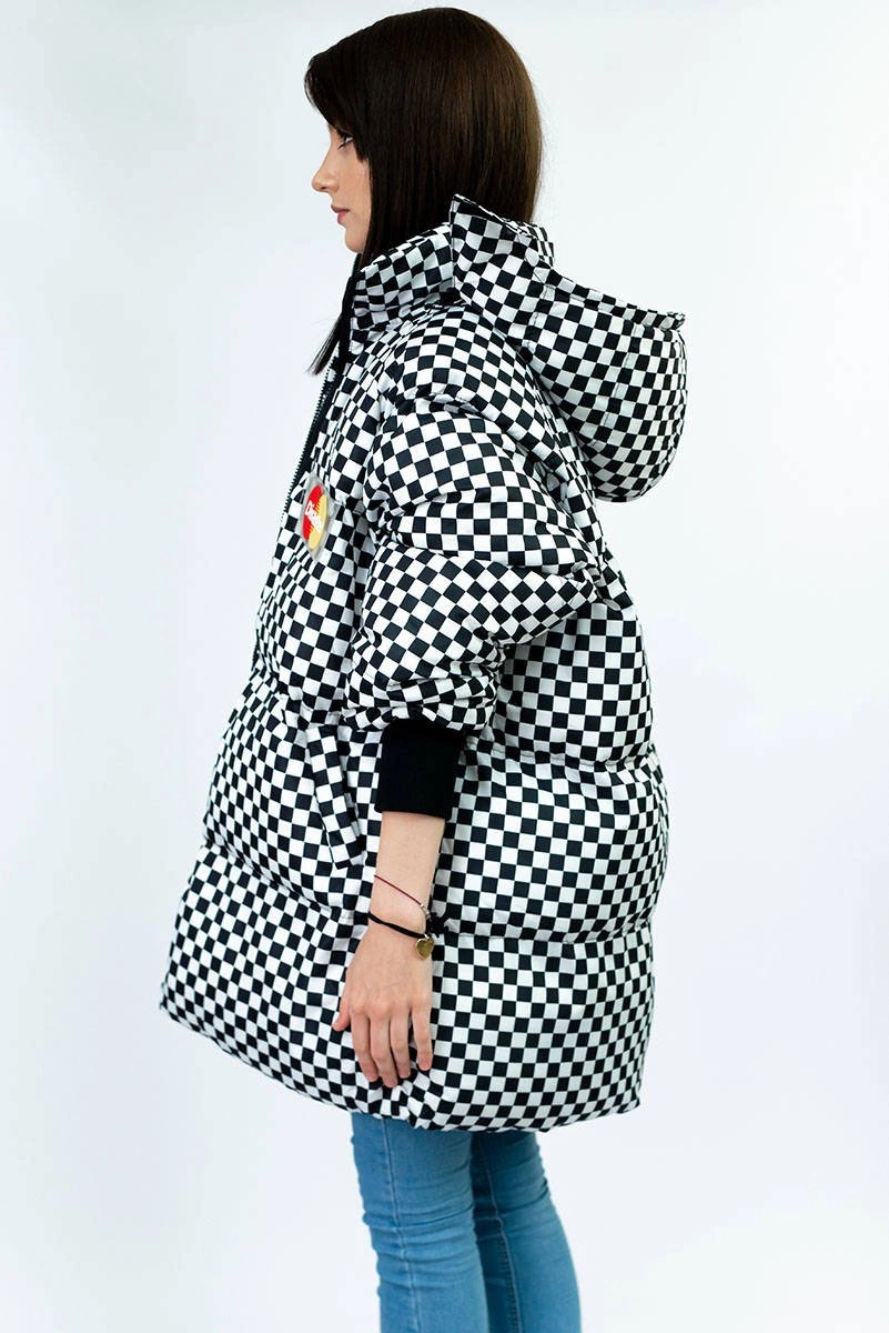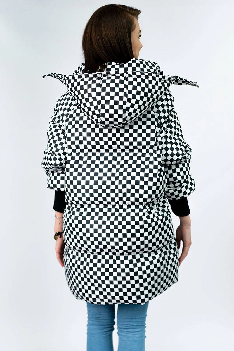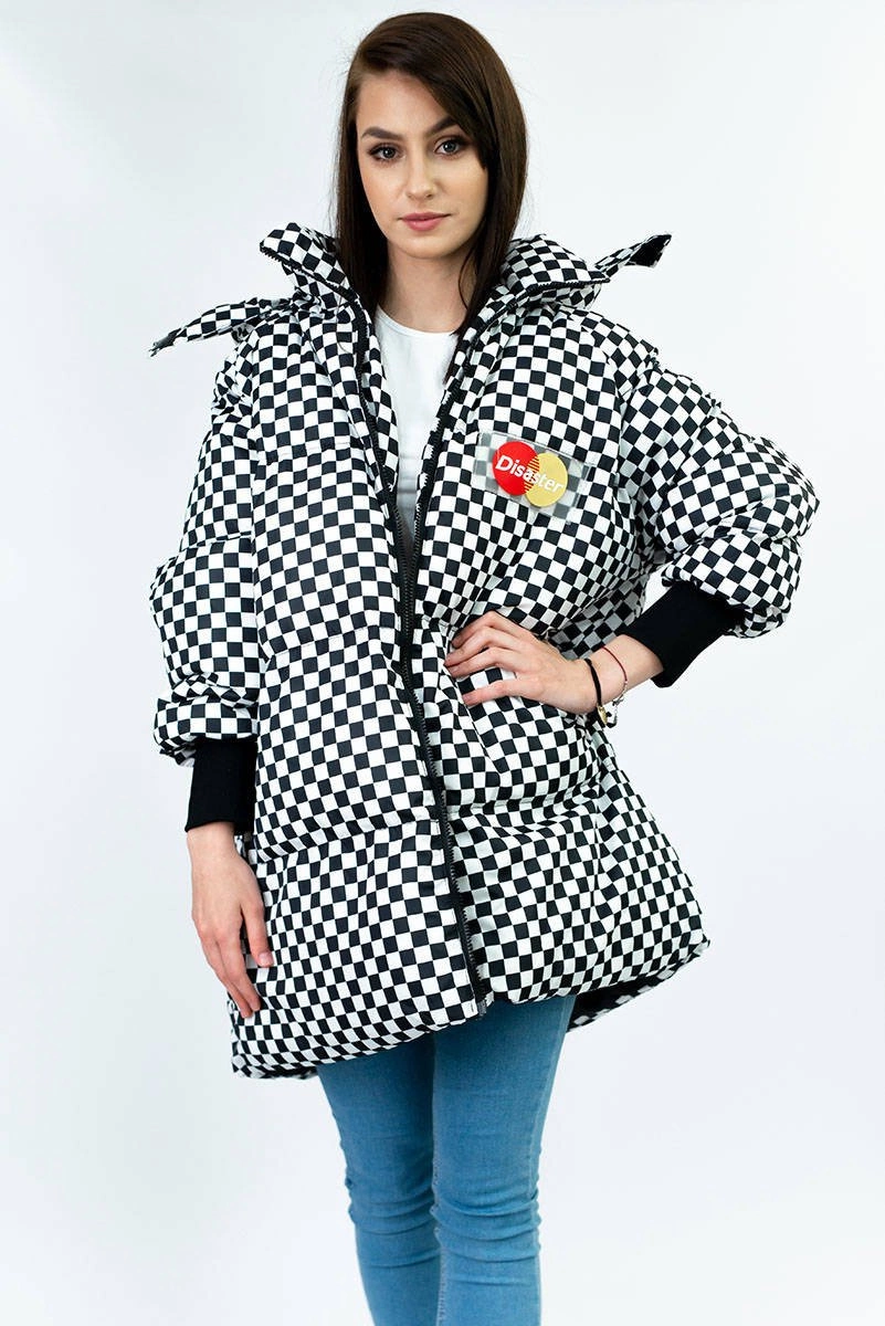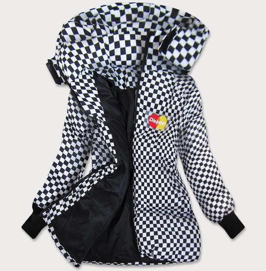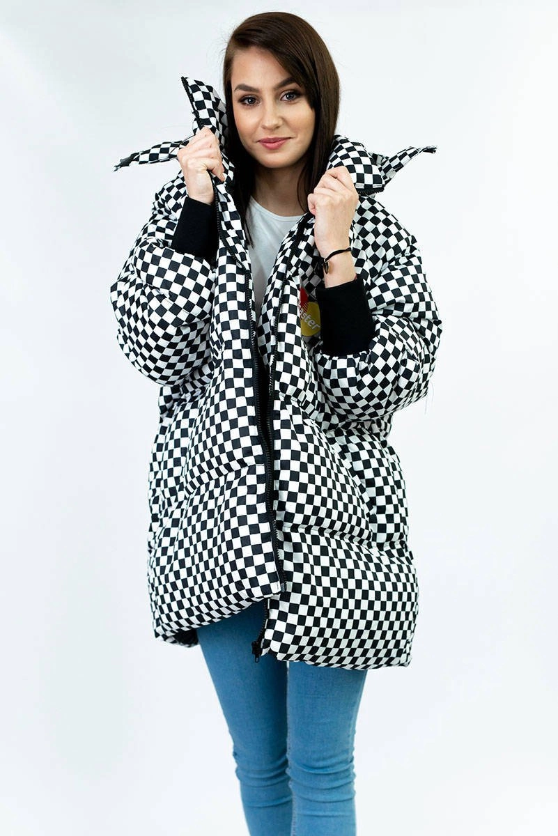 DAMSKA ZIMOWA KURTKA W KRATKĘ CZARNO-BIAŁA (701ART)