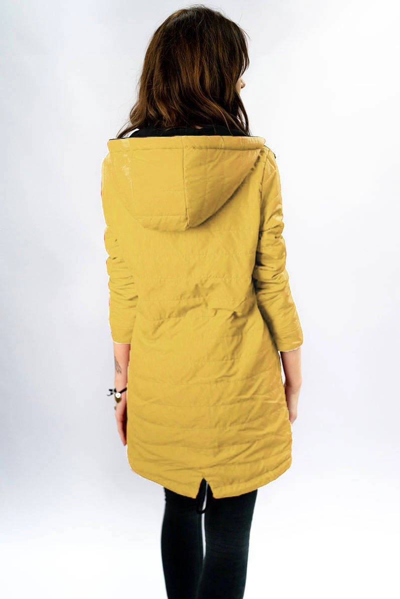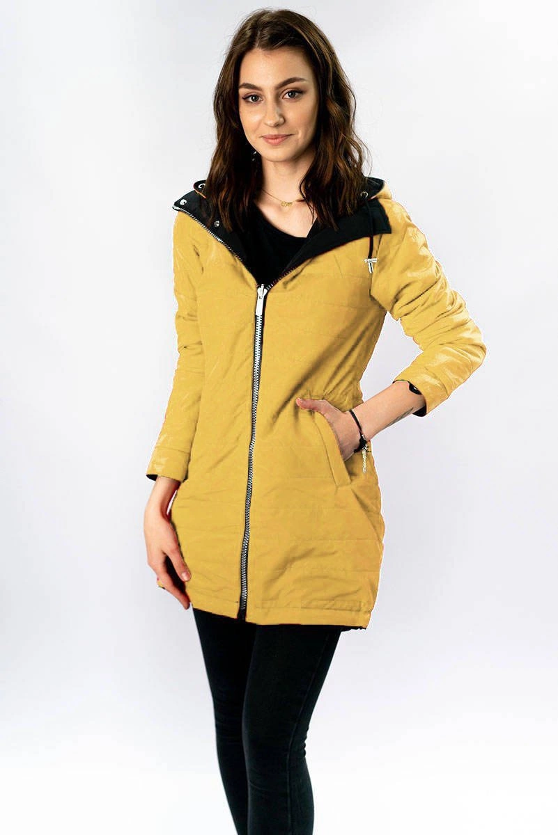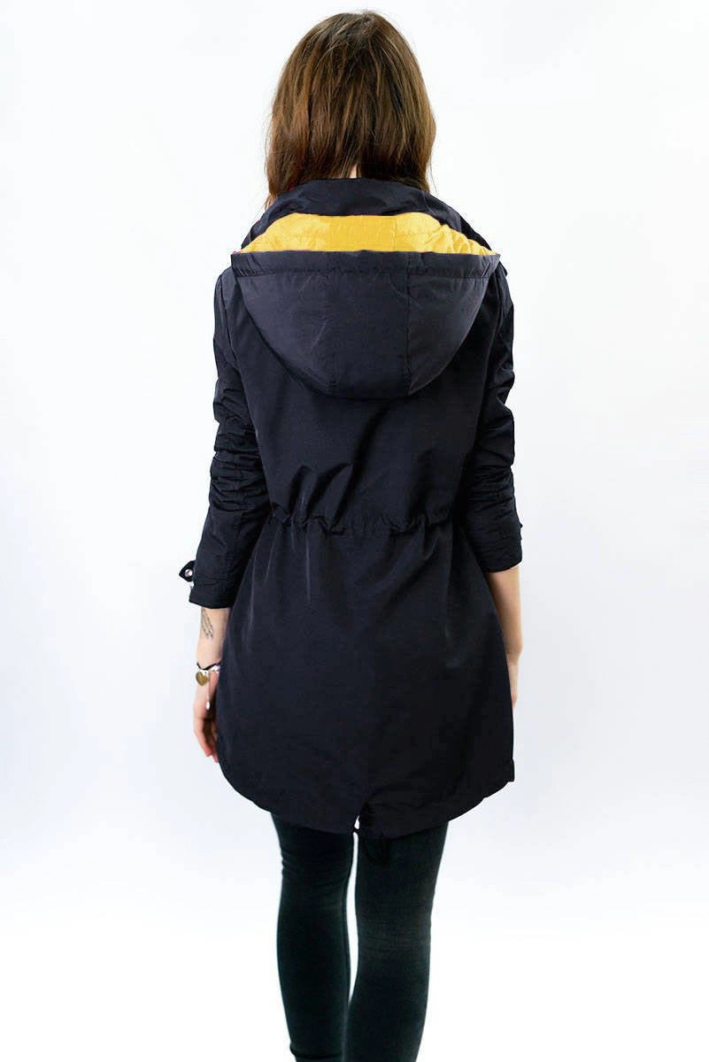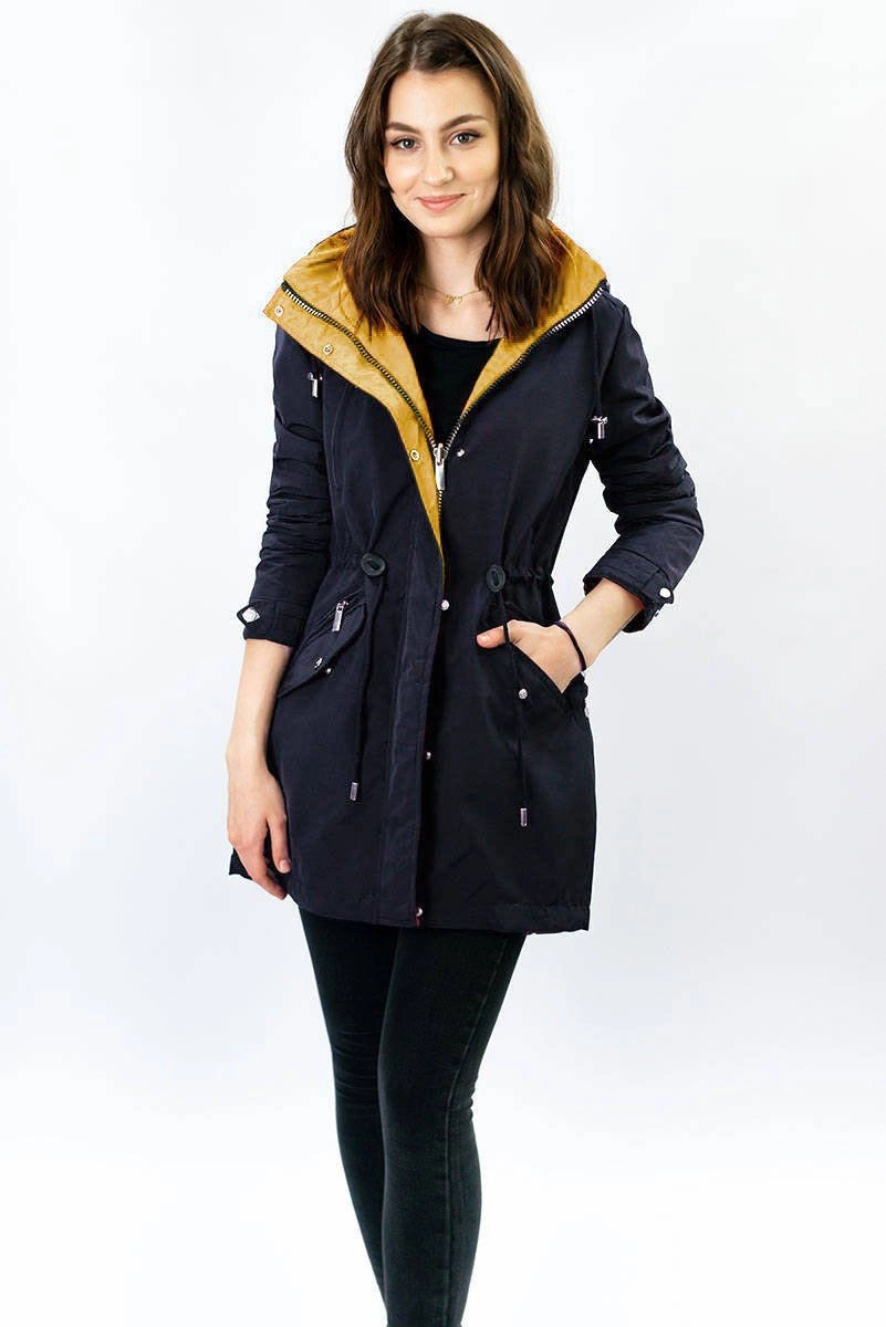 Opinie o DWUSTRONNA PARKA DAMSKA Z KAPTUREM GRANATOWO-ŻÓŁTA (W354)