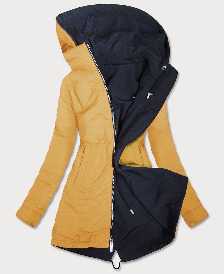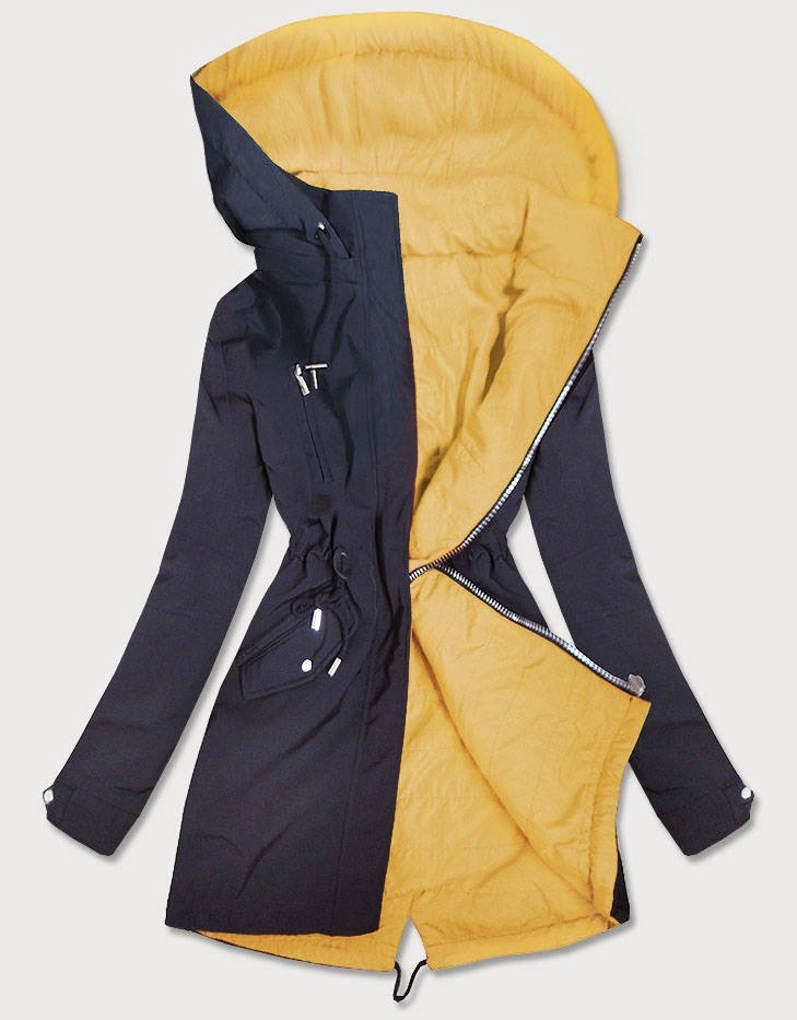 DWUSTRONNA PARKA DAMSKA Z KAPTUREM GRANATOWO-ŻÓŁTA (W354)