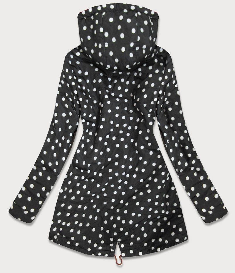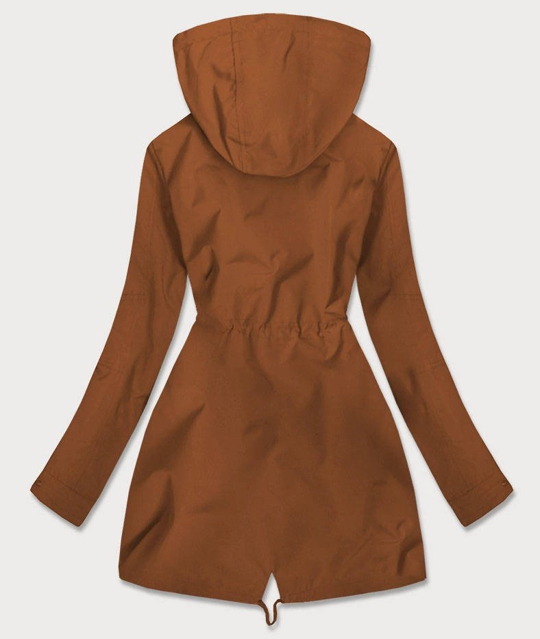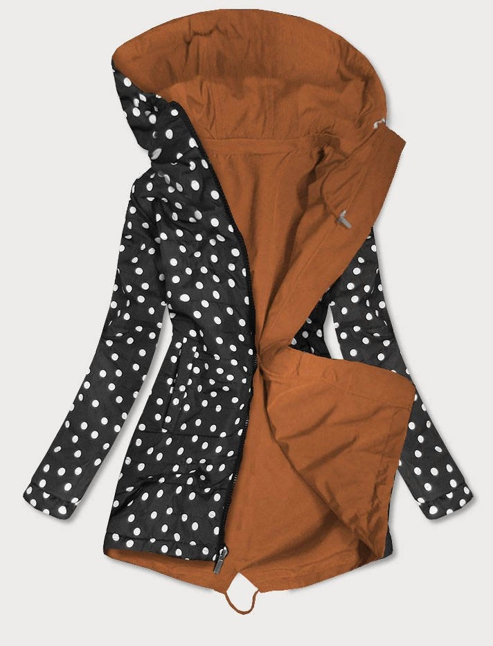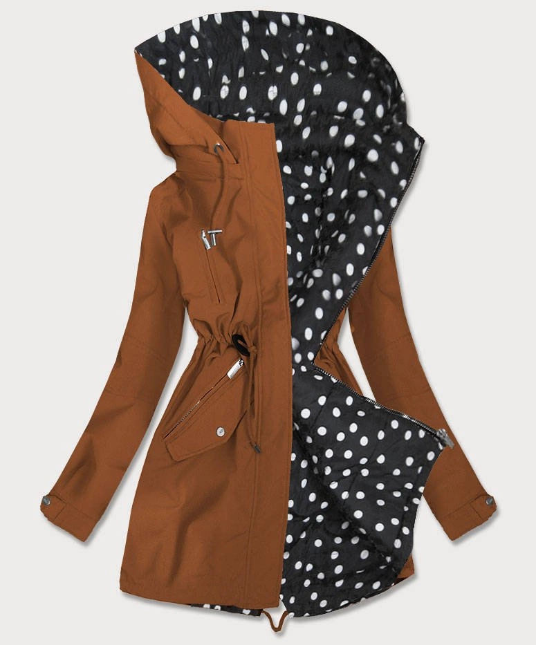 DWUSTRONNA PARKA DAMSKA Z KAPTUREM KARMELOWA W KROPKI (W354-1BIG)