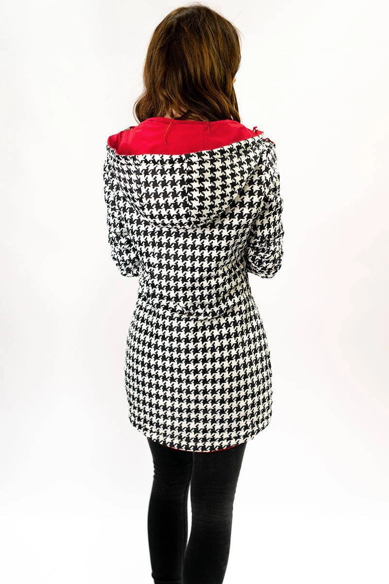 Opinie o DWUSTRONNA TALIOWANA KURTKA DAMSKA CZERWONA-PEPITKA (W350)