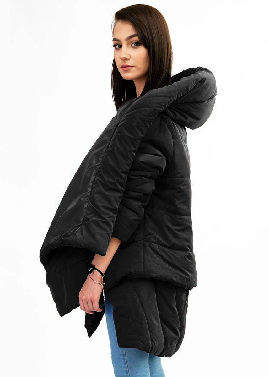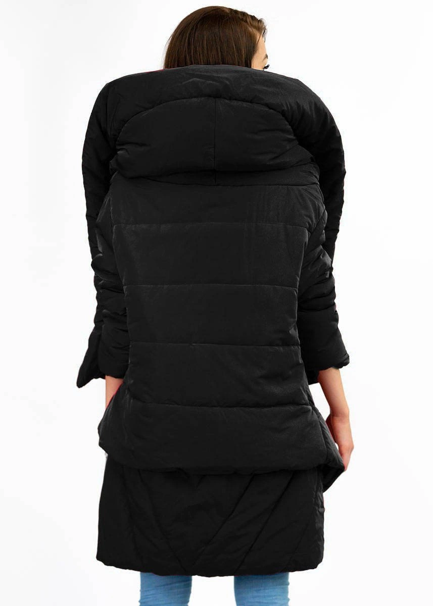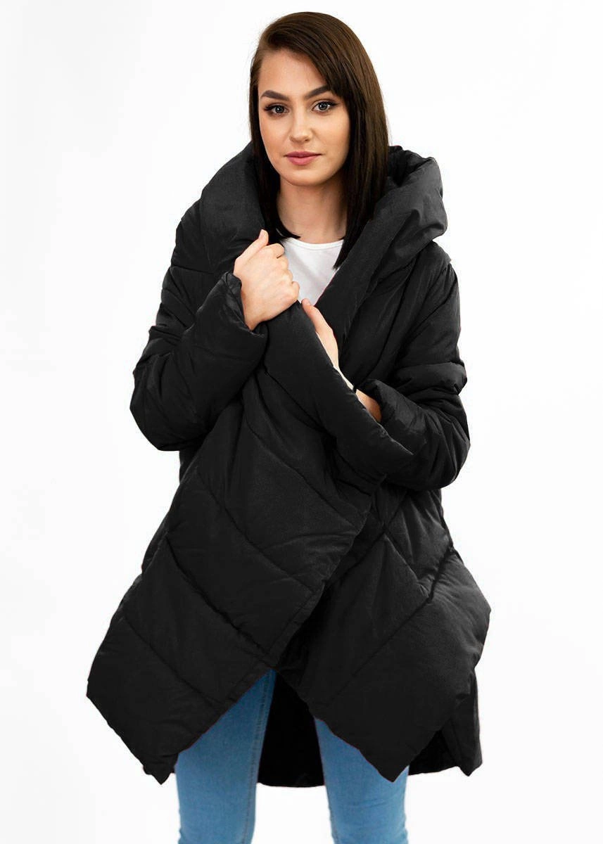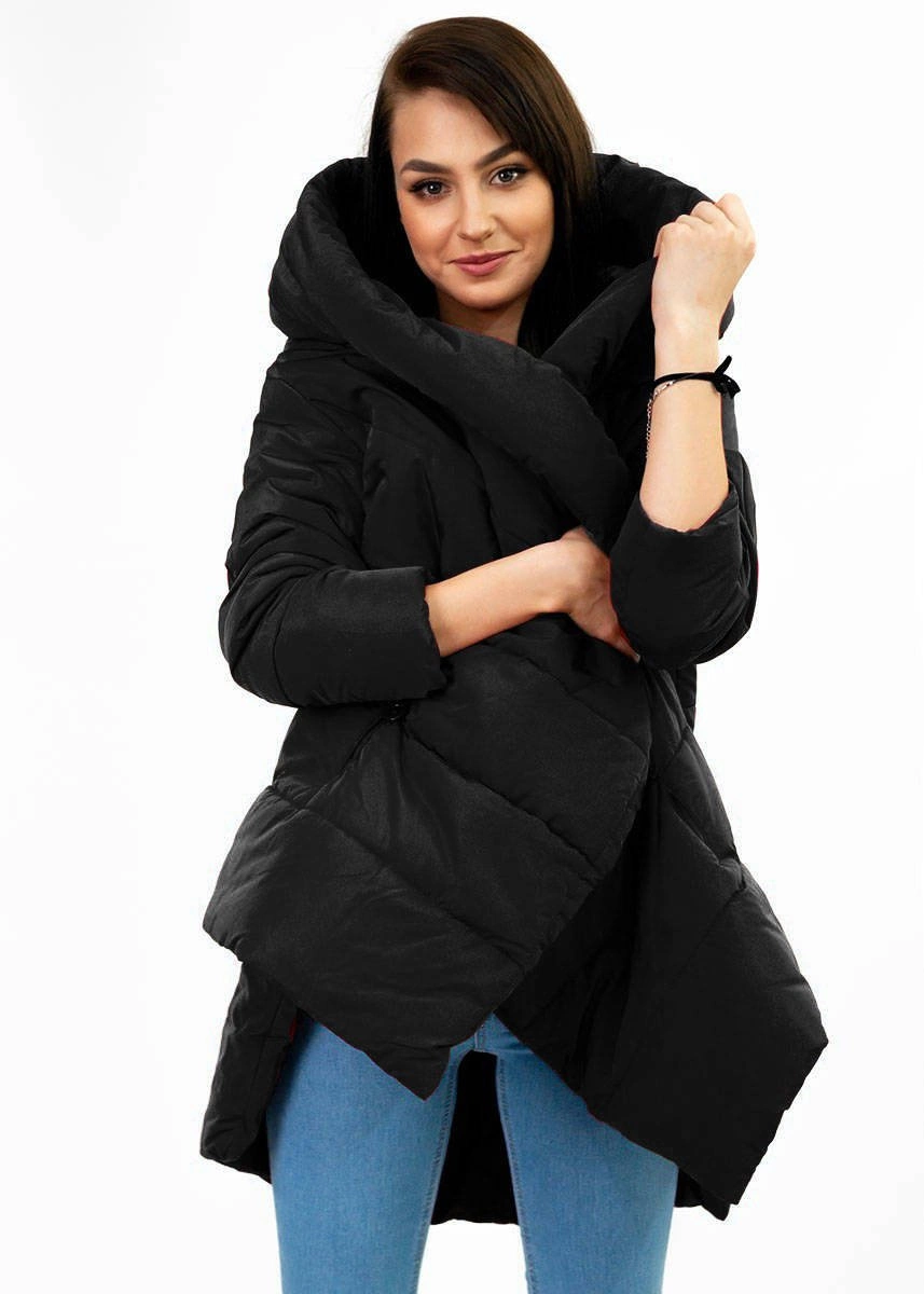 ASYMETRYCZNA DAMSKA KURTKA ZIMOWA CZARNA (X700XART)