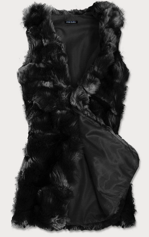 DŁUGA KAMIZELKA ZE SZTUCZNEGO FUTRA CZARNA (102#)