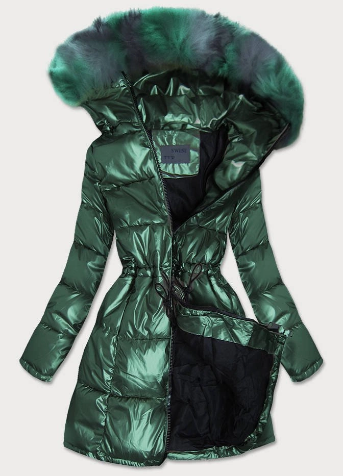 METALICZNA KURTKA ZIMOWA DAMSKA ZIELONA (B9528)